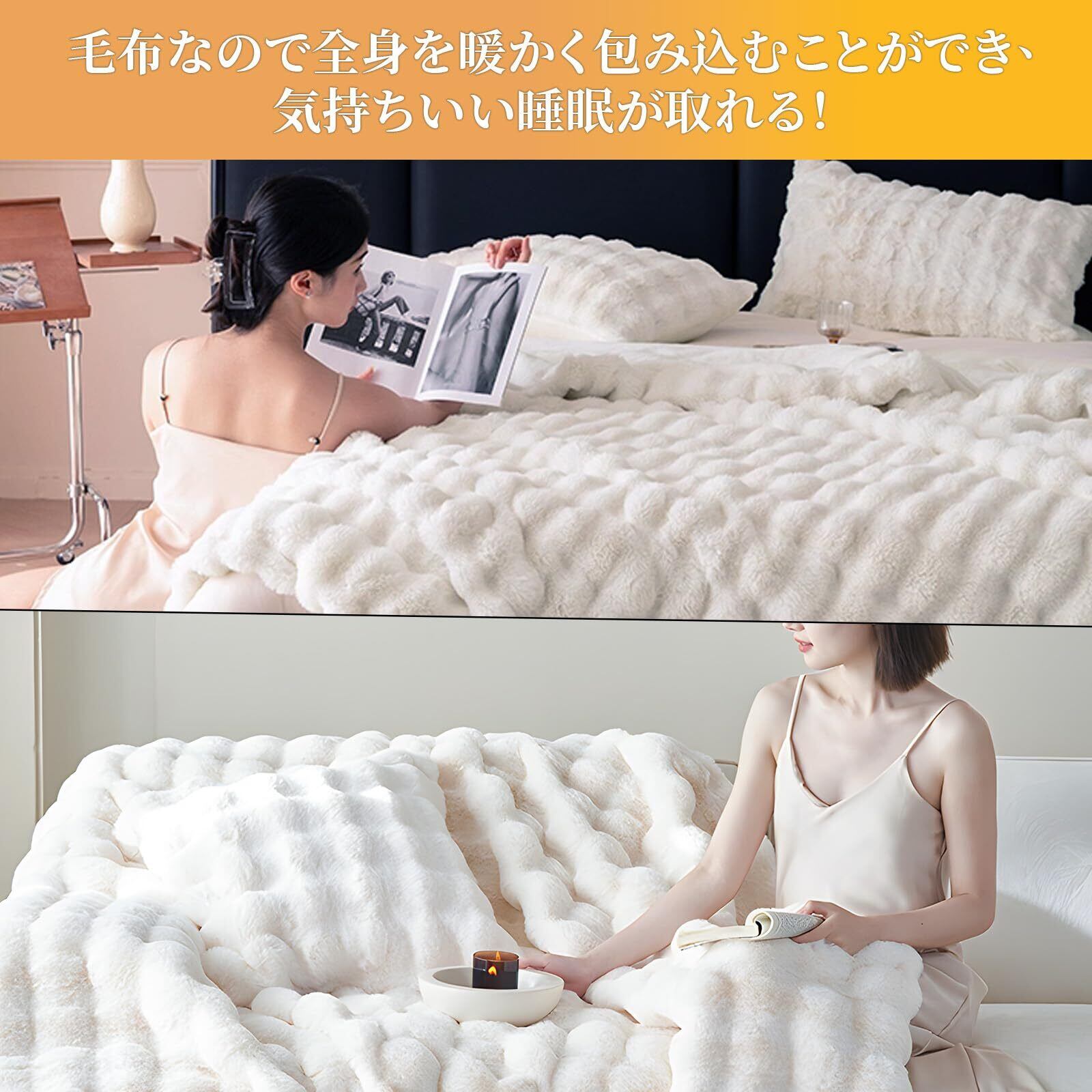 【ふっくら素材と温かい空気の層があなたを包む】毛布は贅沢なふわふわファータッチで、美しいだけでなく肌触りも優れています。寒い冬にも安心のボリューム感があり、暖かさも厚みも程よいバランスの毛布です。長い毛足をしっかり立たせる特殊加工で生まれるもっちりとした柔らかさ、ボリューム感のある柔らかい肌触りに包まれるともう手放せません!圧縮パックでお届けしておりますが、輸送中の振動や圧力により、パック内に若干空気を含んで「ふくらんで見える」場合がございます。商品に影響のないご使用いただけます。
