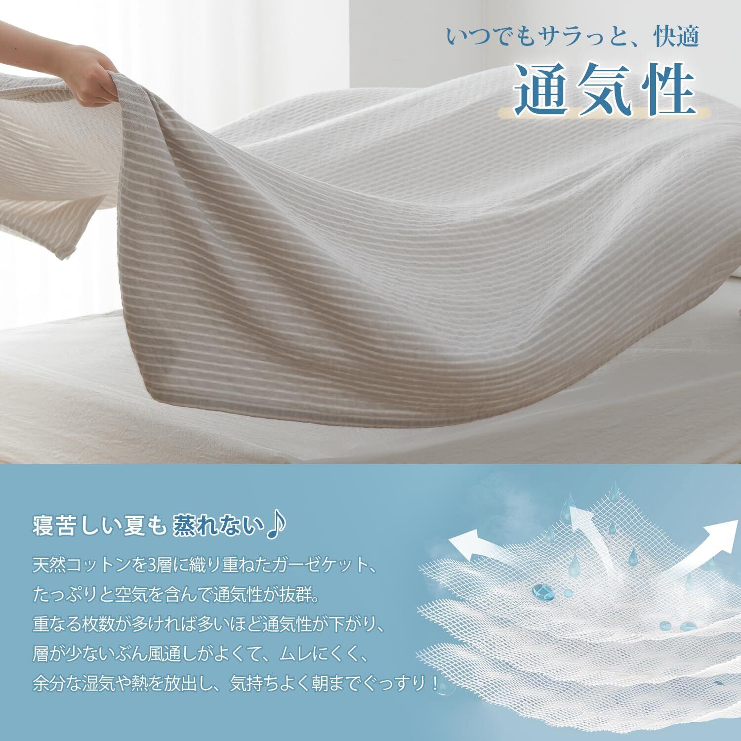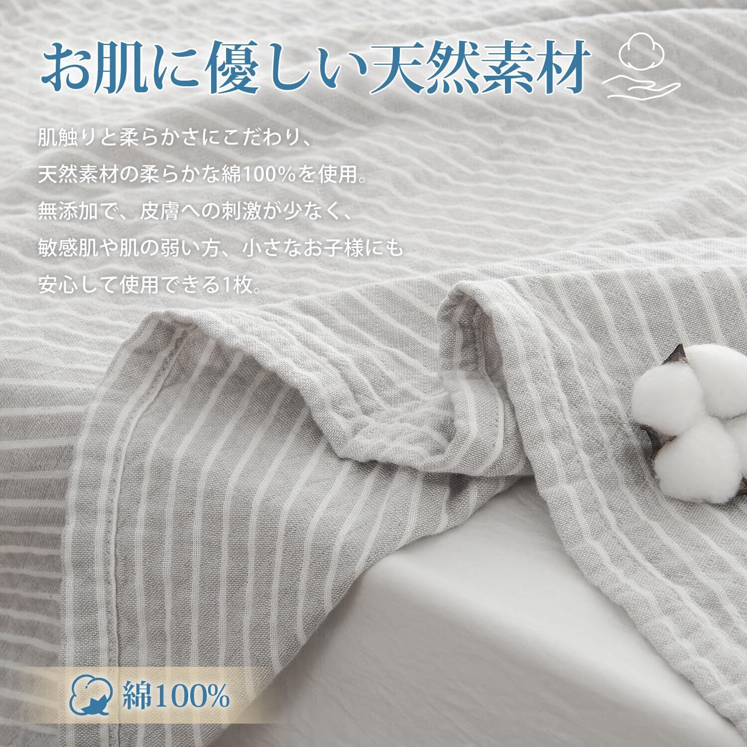 【お肌に優しい天然素材】綿100%のガーゼ生地を採用したガーゼケット、どこに触れても柔らかくて肌触りがよく、肌の弱い方、敏感肌の方も安心してお使いいただけます。耐久性にも優れており、使うほど肌に馴染み、長持ちできる一枚。