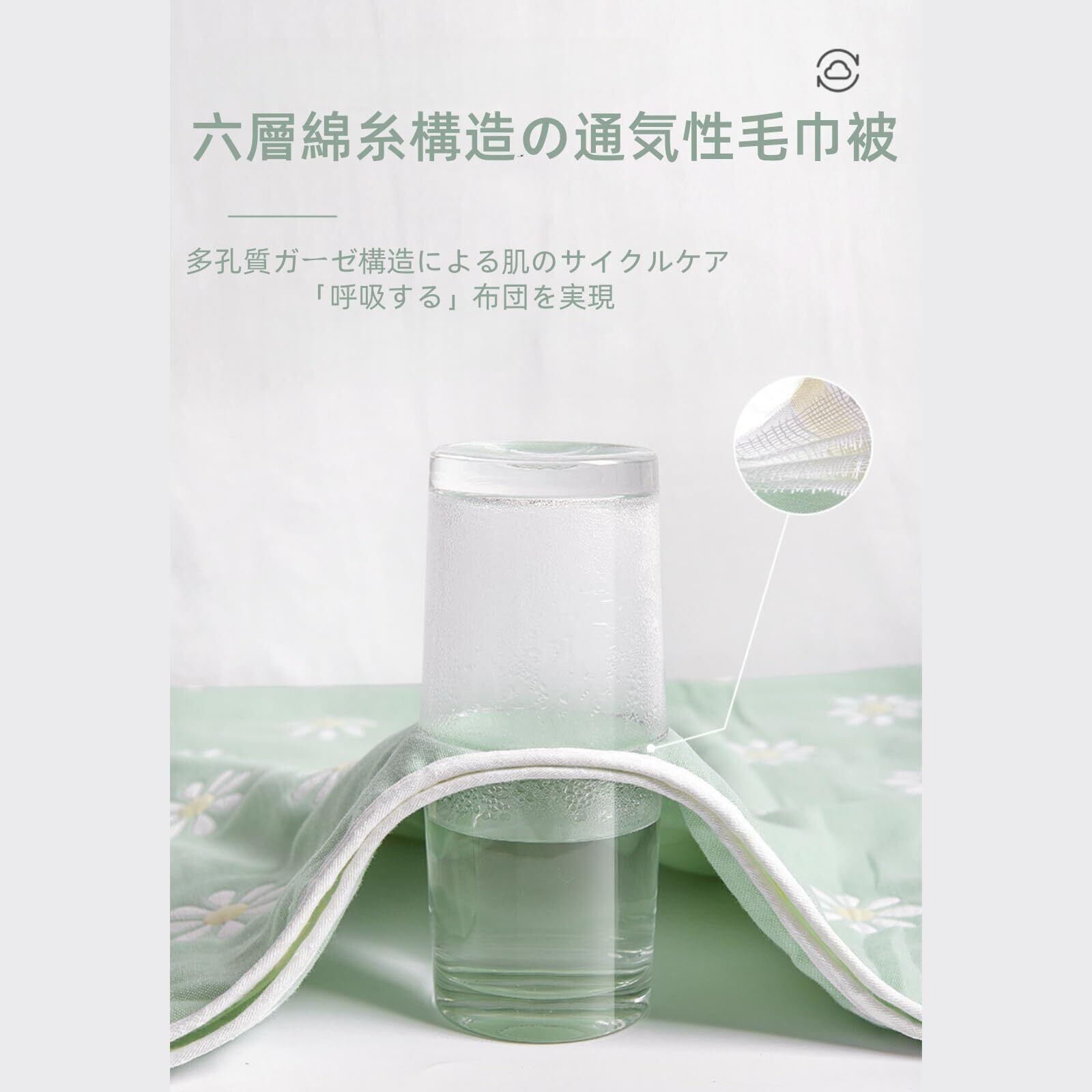 【冷房対策・とろけるような肌触り】夏の必需品であるタオルケット。通気性に優れる薄いガーゼを6枚重ねて層にした寝具なので、ふんわりやわらか、肌触りもやさしく、軽い掛け心地になり、デリケートな肌の人にはおすすめです。
