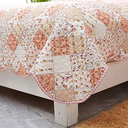 ✿ 清楚で可愛らしい小花柄と同色系のチェック柄を組み合わせることにより、かわいい雰囲気が生み出し、部屋も明るくなります。綿が片寄りしないため、肌さわりいい生地にキルティングを施しています。フチ部分は波型の仕上げ、細かいところまでこだわって高級感演出。