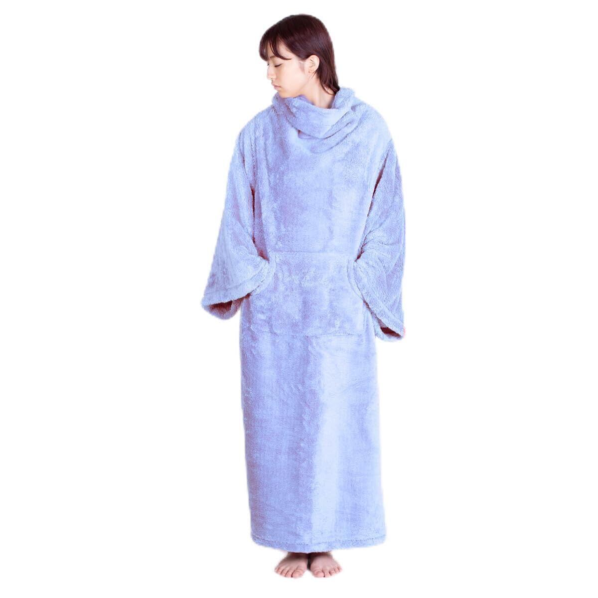 WIGWAM(ウィグワム)羽織れるブランケット 着る毛布 ブルー (幅136×身丈150cm) ルームウェア 防寒 男女兼用 前ポケット付き ボタンタイプ
