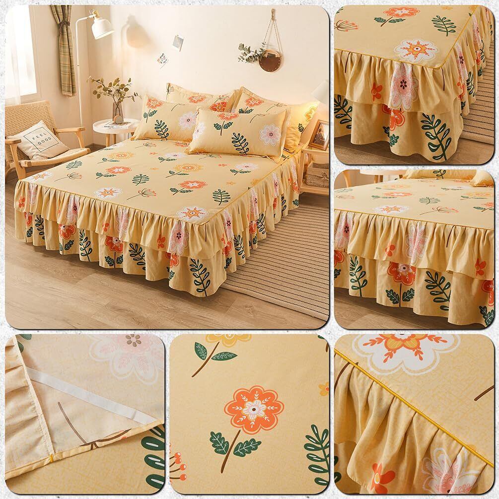 【新春セール】AYARATI ベッドスカート ベッドカバー ベッドスプレッド 四季兼用 通気性 肌に優しい 雰囲気アップ 簡単フィット 長持ち (サニーフラワー,150*200cm・単品)