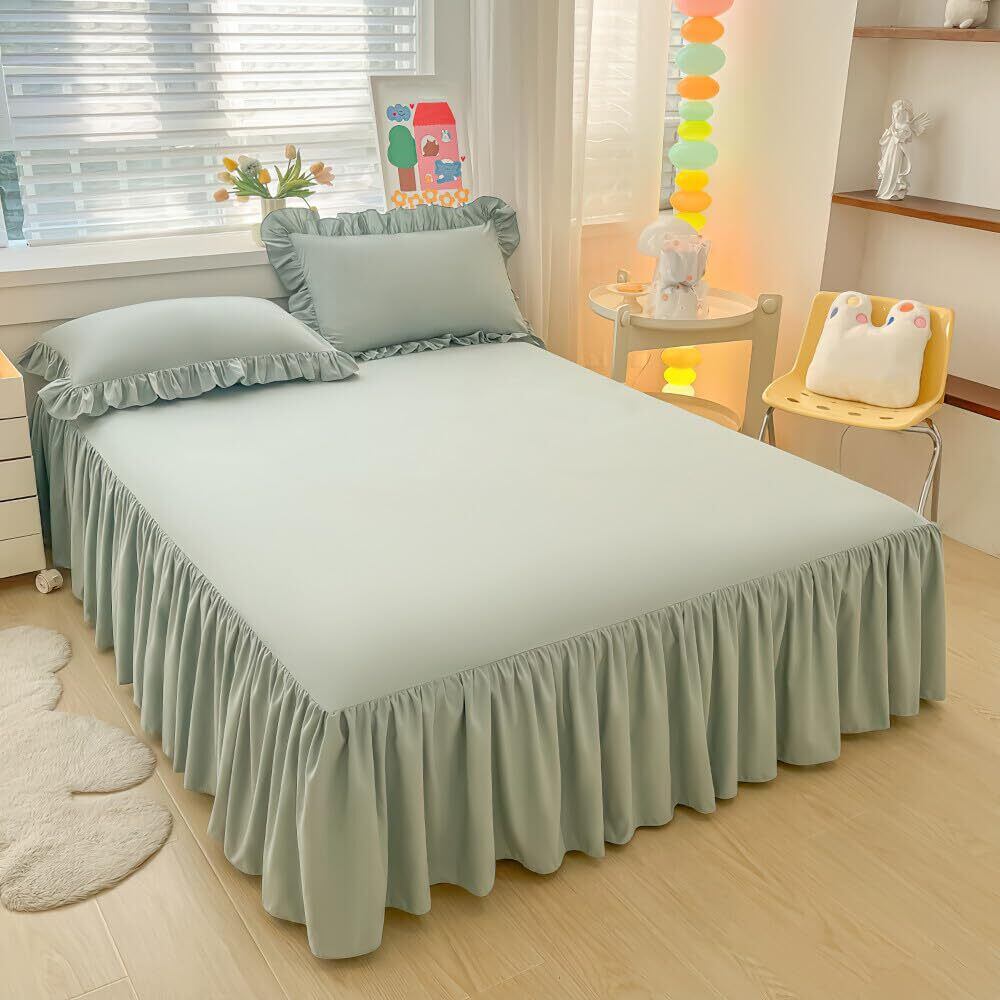 ノーブランド品ベッドシーツベッドスカート北欧おしゃれ無地F11006緑色100*200*43cm