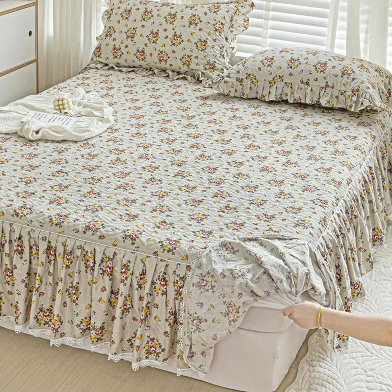 Fzigenle ベッドスカート 花柄 レース キルティング 中綿 上品 厚手 姫系 フリル ベッドカバー 秋冬 カラーb03 A200*220 柔らか ダブル キング ベッドスプレッド マットレスカバー 中綿ベッドスカート キルティング 洗える きれいめ インテリア 北欧