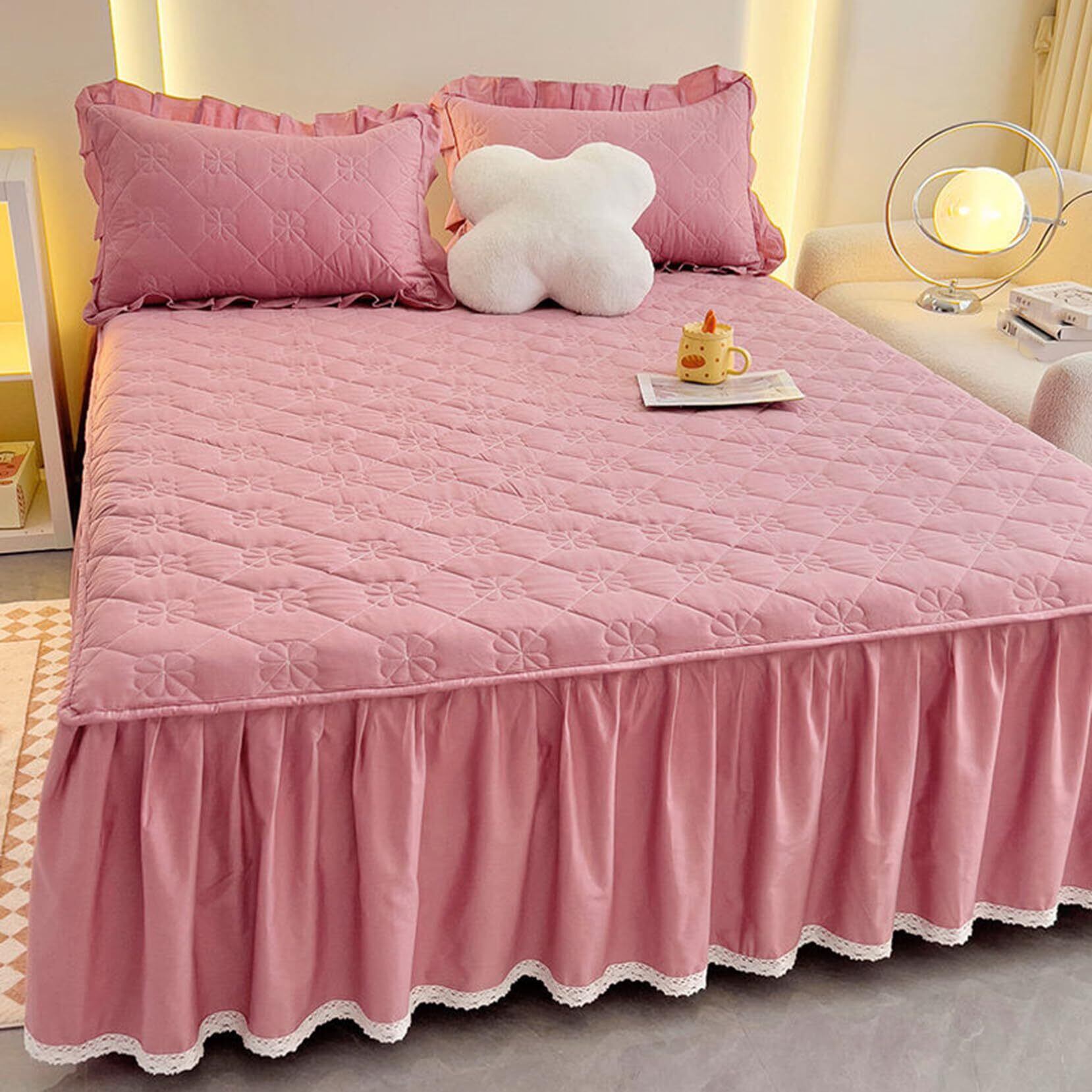 Fzigenle ベッドスカート 中綿ベッドスカート キルティング フリル 姫系 可愛い ベッドカバー セミダブル ダブル ベッドスプレッド 寝室 ホテル 寝具カバー 洗える ベッド用 おしゃれ 150*200 きれいめ ピンク エレガント プレゼント 洋式・和式兼用