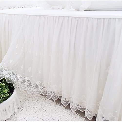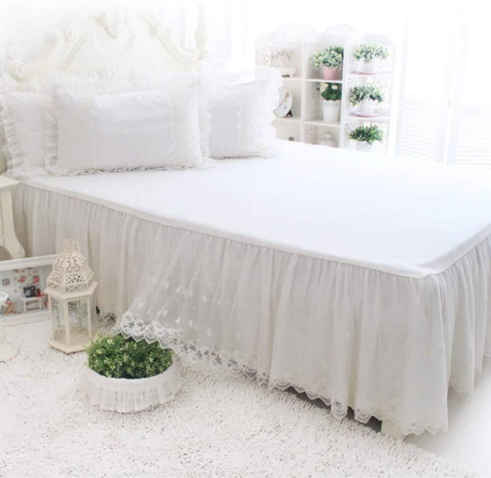 Lucky&Beauty ホワイト刺繍レースベッドカバーベッドシーツ 綿100%マットレス敷きカバー 可愛いフリルベッドスカート 丸洗いOK 四季通用 100*200*43㎝ シングル