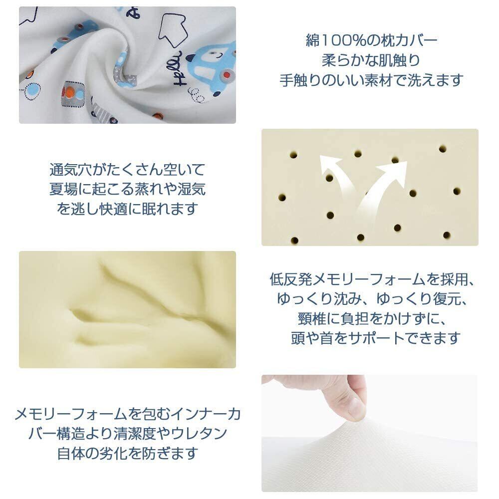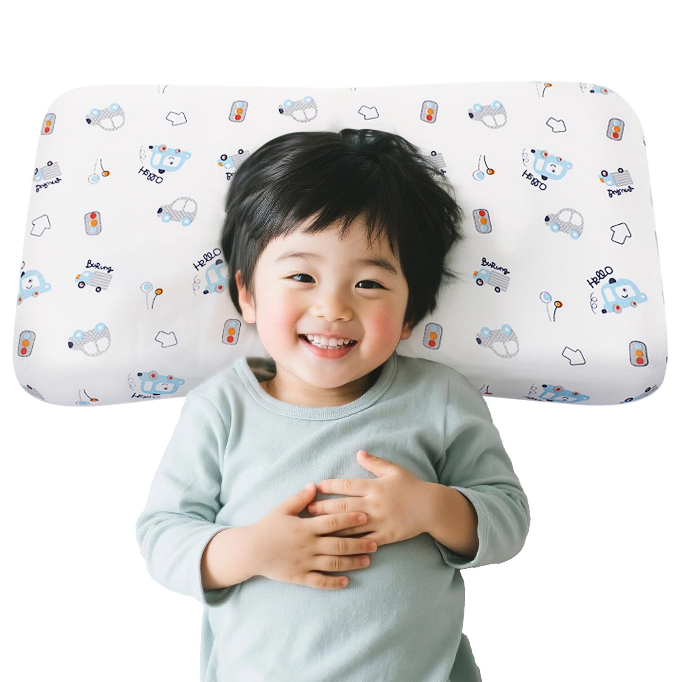 Adokoo 子供枕 向き癖防止枕 子ども用まくら 低め 快眠 低反発ピロー 絶壁頭 斜頭 寝姿を矯 正 睡眠まくら キッズ枕 男女兼用 汗とり 綿100% 通気 プレゼント 車柄