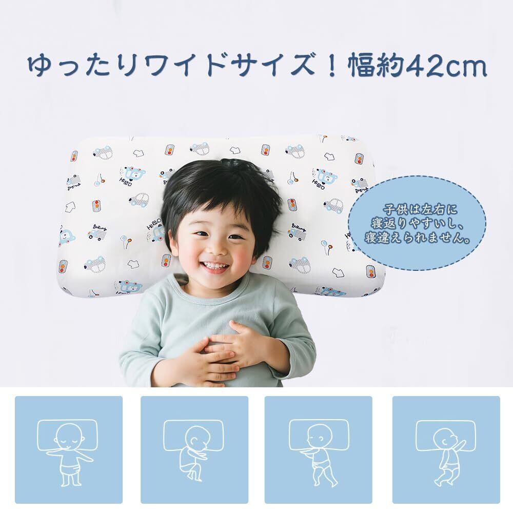 【綿100%カバー・寝返りスムーズ設計】お子様の肌に優しい綿100%のカバーで、快適な眠りをサポート。洗濯も簡単で清潔を保てます。首への圧迫感がなくなて、スムーズに寝返りがうてるので心地良い睡眠が得られます。42cmのたっぷり横幅で寝返りしても頭が落ちず、朝までぐっすり快眠できます。