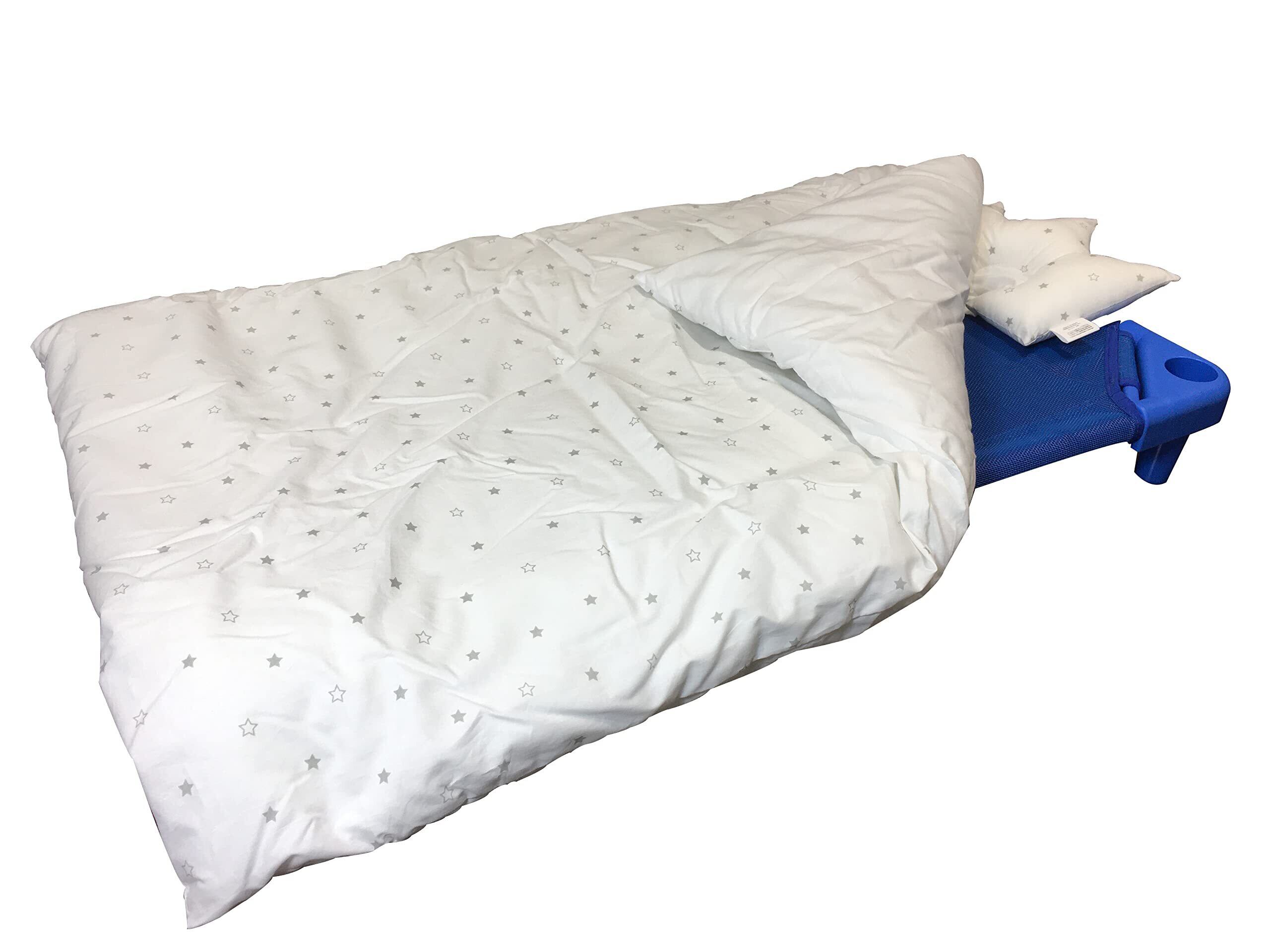 複数をスタッキングができるお昼寝コットです。保育園やこども園でお昼寝の時に敷く抗菌コットで、メッシュ生地だから通気性に富んでいます。本体の大きさ130cmのトドラータイプで、耐荷重は50kg(跳んだり跳ねたりはできません。)となっています。
