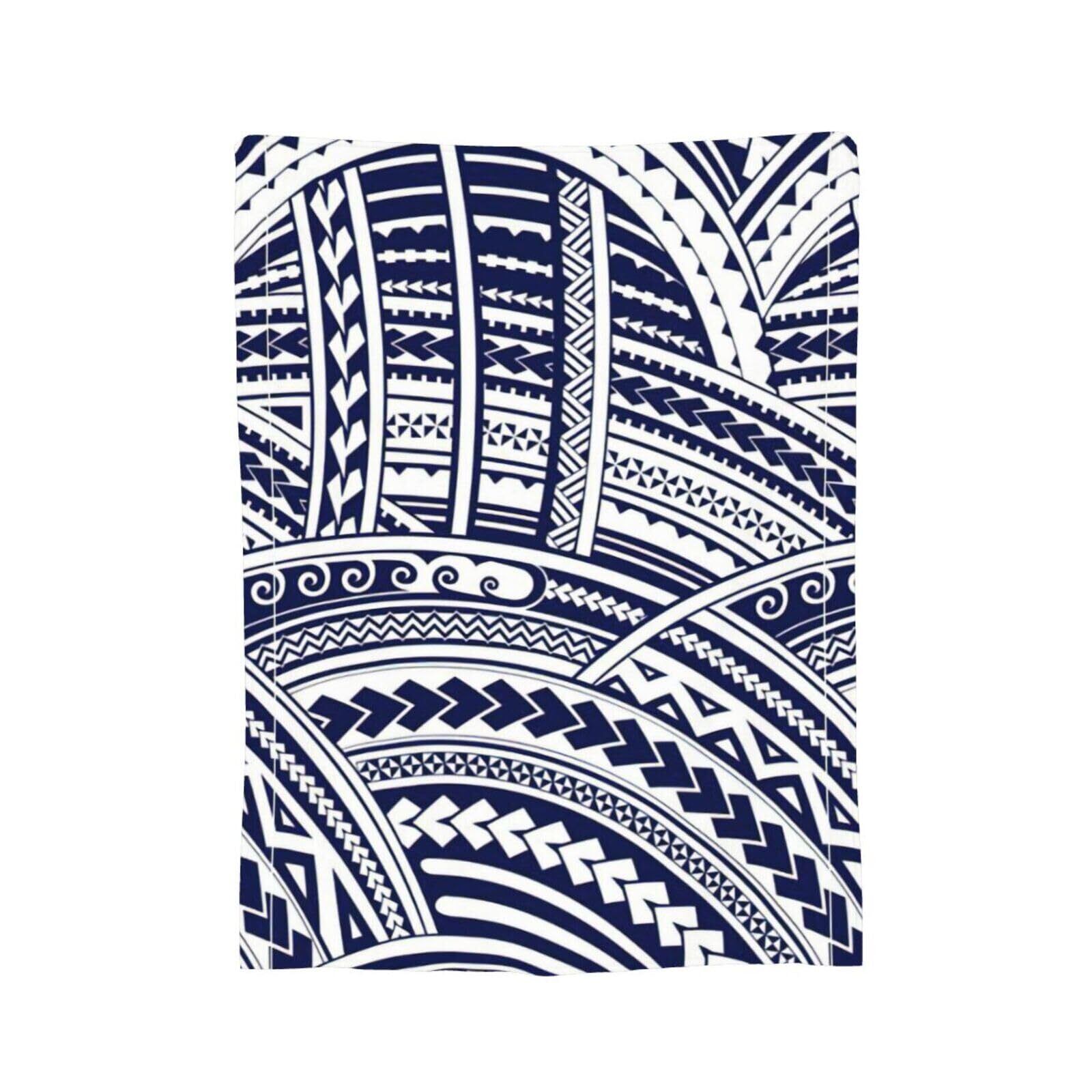 【特価商品】WURTON ブルーポリネシアマオリ族柄プリント 快適 ウルトラソフト マイクロフランネル 万能スローブランケット 大人 女性 キッズ ギフト 80x60インチ