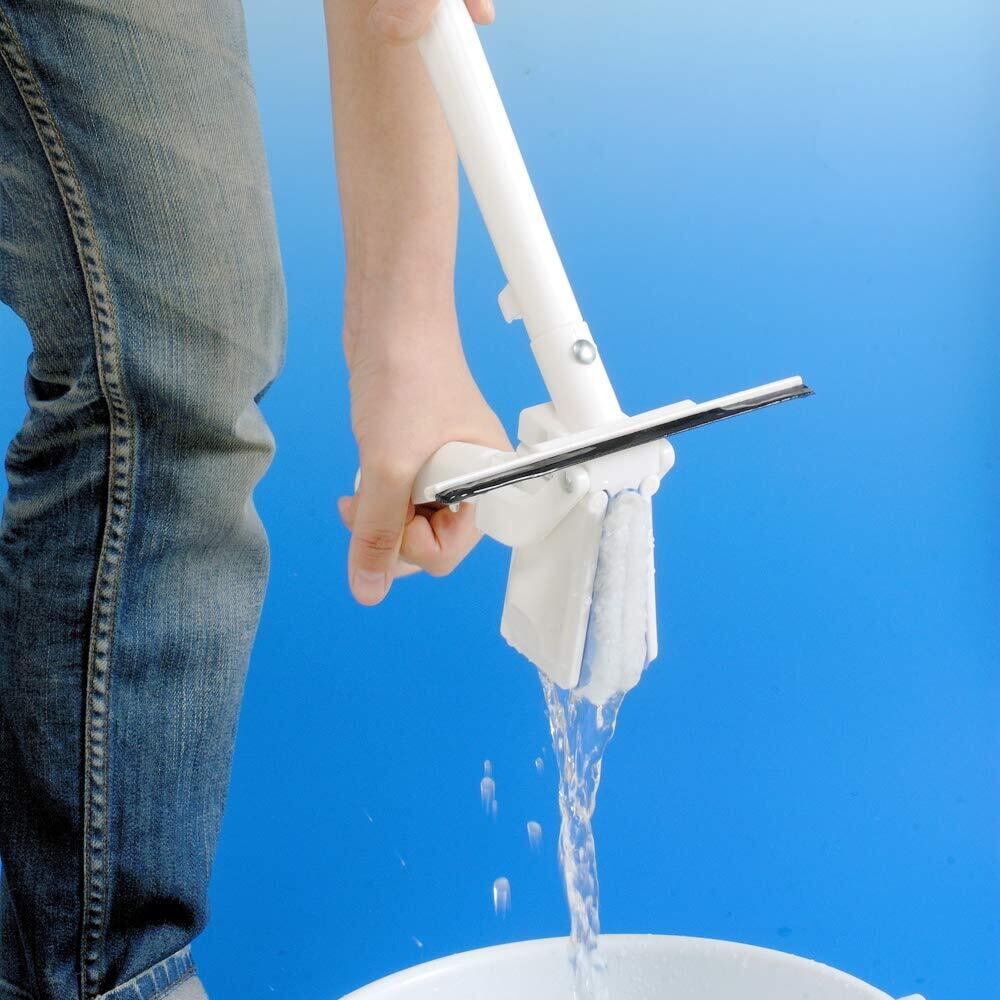 マイクロファイバーとブラシ繊維のWのチカラで窓も網戸もこれ1本でお掃除できます。洗剤不要、水だけでOK。収納に便利な伸縮柄タイプ。 ガラスをキレイに仕上げる水切りゴム付きです。 ジョイント部分は安心連結構造なのでヘッド交換も簡単です。