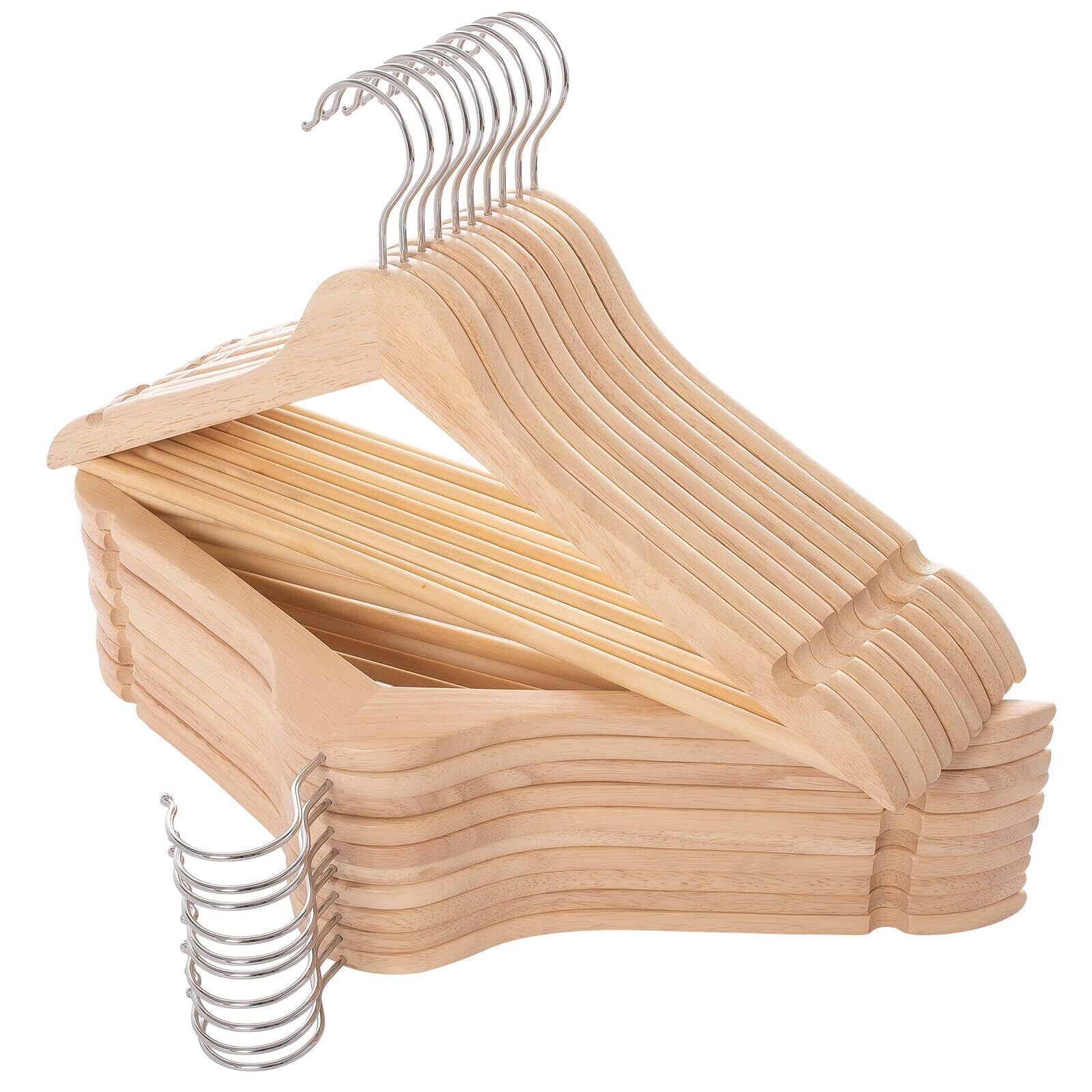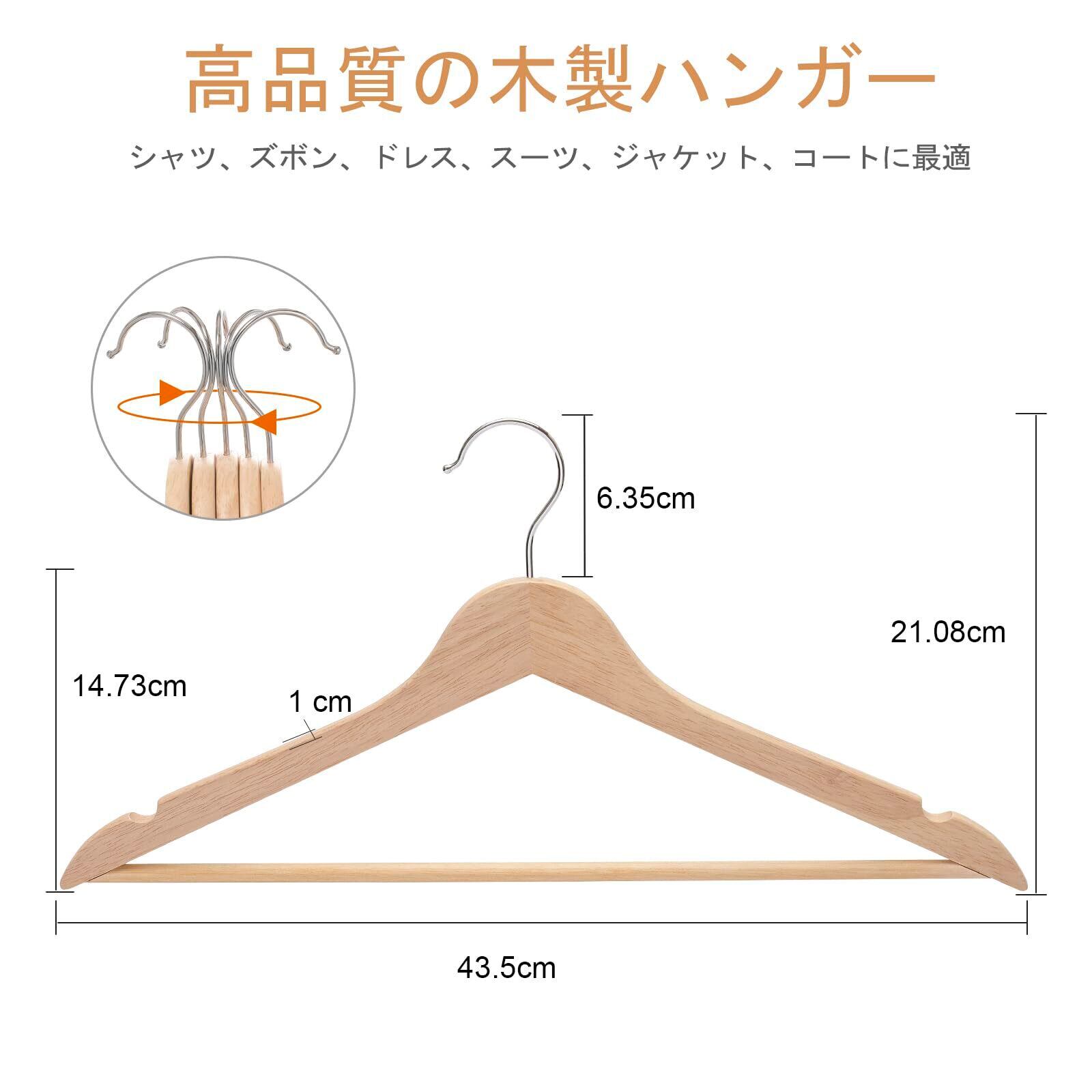 ELONG HOME 木製ハンガー 滑り止め凹みとズボンバーが付いた衣類ハンガー 型崩れ防止 360度回転薄型洋服ハンガー スーツ・シャツ・ジャケット・コート用 天然の美しい木目 20本組セット