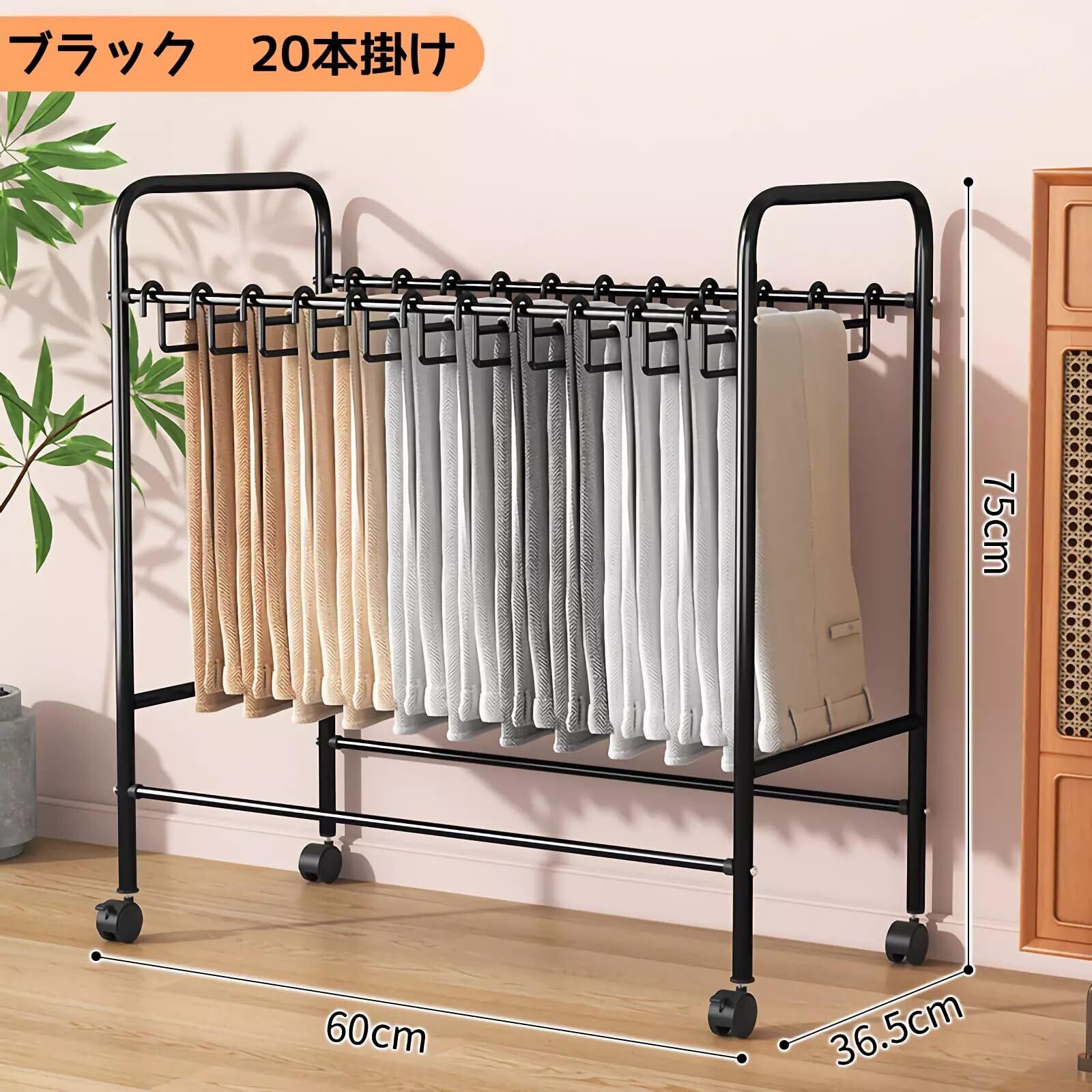 [ClutterFree] スラックハンガー 大容量 20本掛け パンツハンガー スイング式 キャスター付き 出し入れカンタン ハンガーラック 床置きズボン棚 軽量 頑丈 コンパクト 収納 省スペース 簡単組み立て (ブラック, 幅60cm 20本掛け)