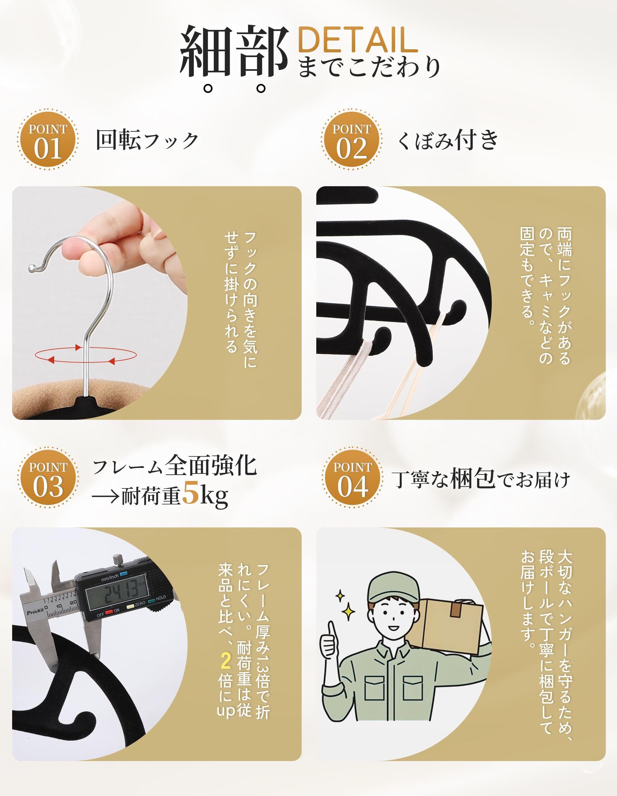 【数量限定】【独自設計×王様のハンガー】チチロバ(TITIROBA) ハンガー すべらない かたくずれ防止 襟が伸びない 伸び防止 跡がつかない 連結フック 頑丈 スリム ベルベット製 20本組 ブラック