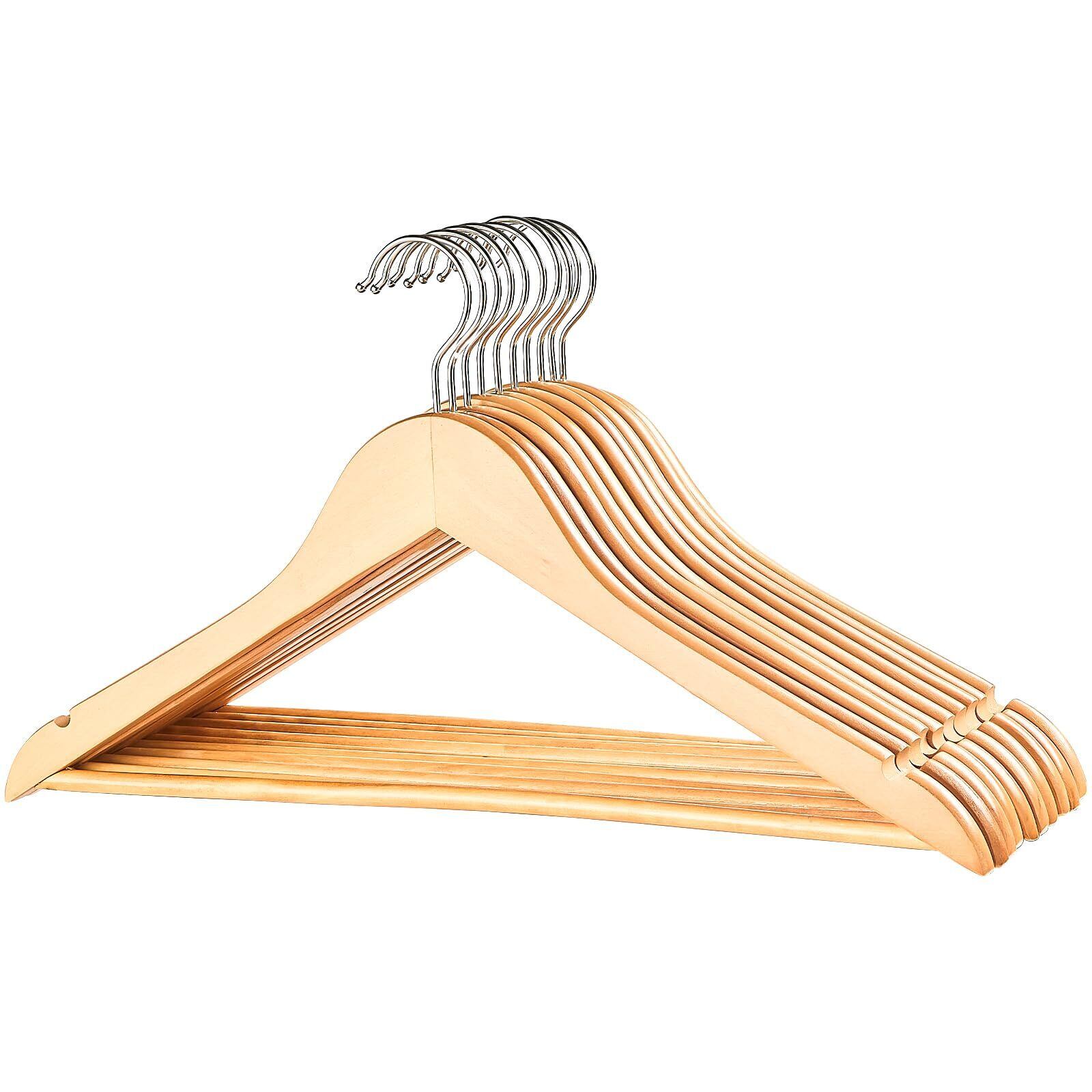 【商品仕様】バー付き木製ハンガーのお得な10セットです。サイズ:幅約 44.5cm*肩厚1.2cm*高さ約 23cm。