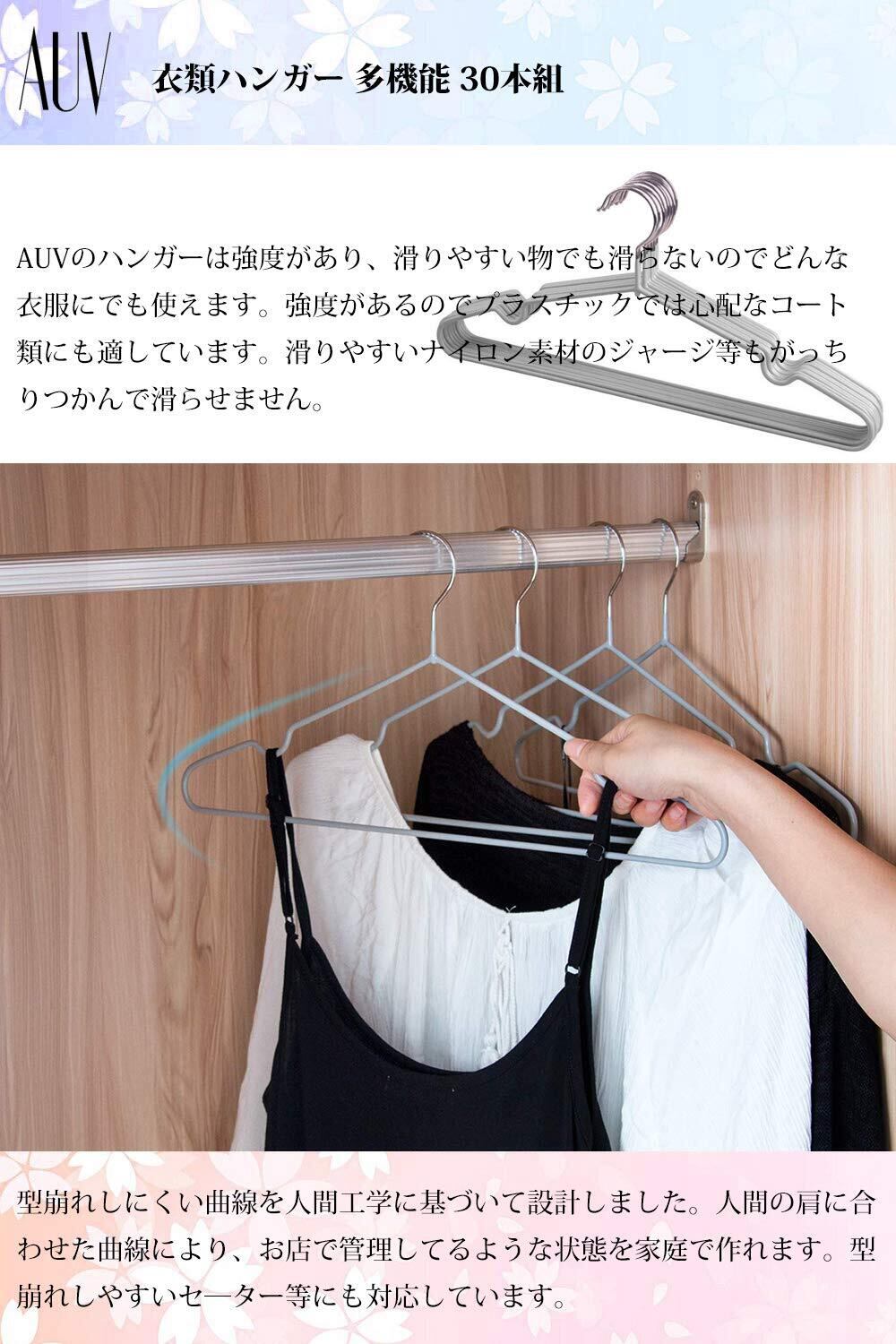 AUV ハンガー すべらない PVC特殊ラバー加工 30本組 セット 洗濯 衣類ハンガー 多機能 滑り止め 変形にくい 物干し hanger 曲がらな 超強い荷重 乾湿両用 PVC(グレー)