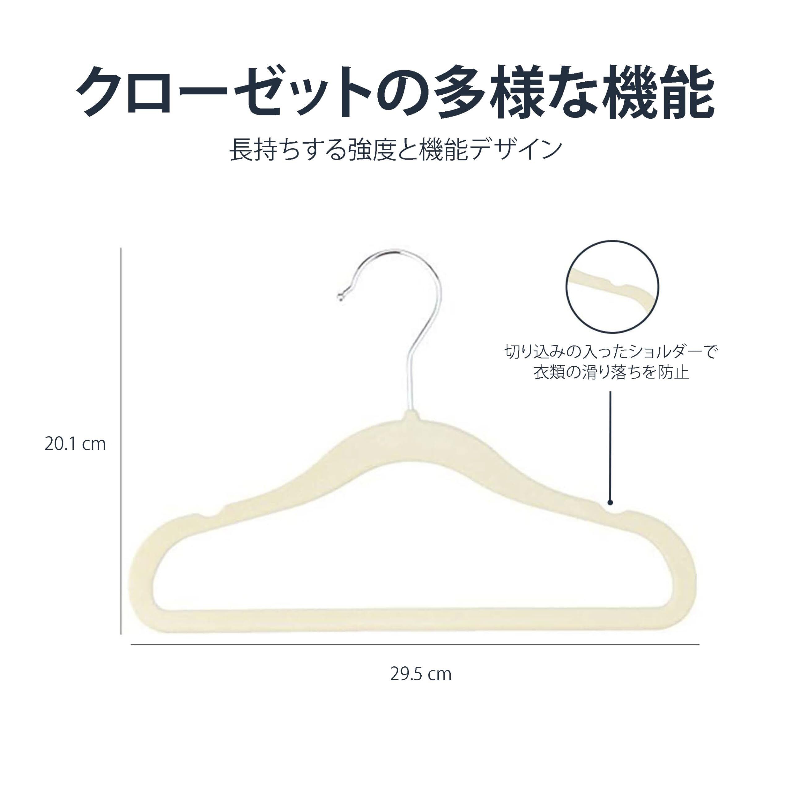 表面のビロード素材と肩部のくぼみで衣服の落下を防ぎます