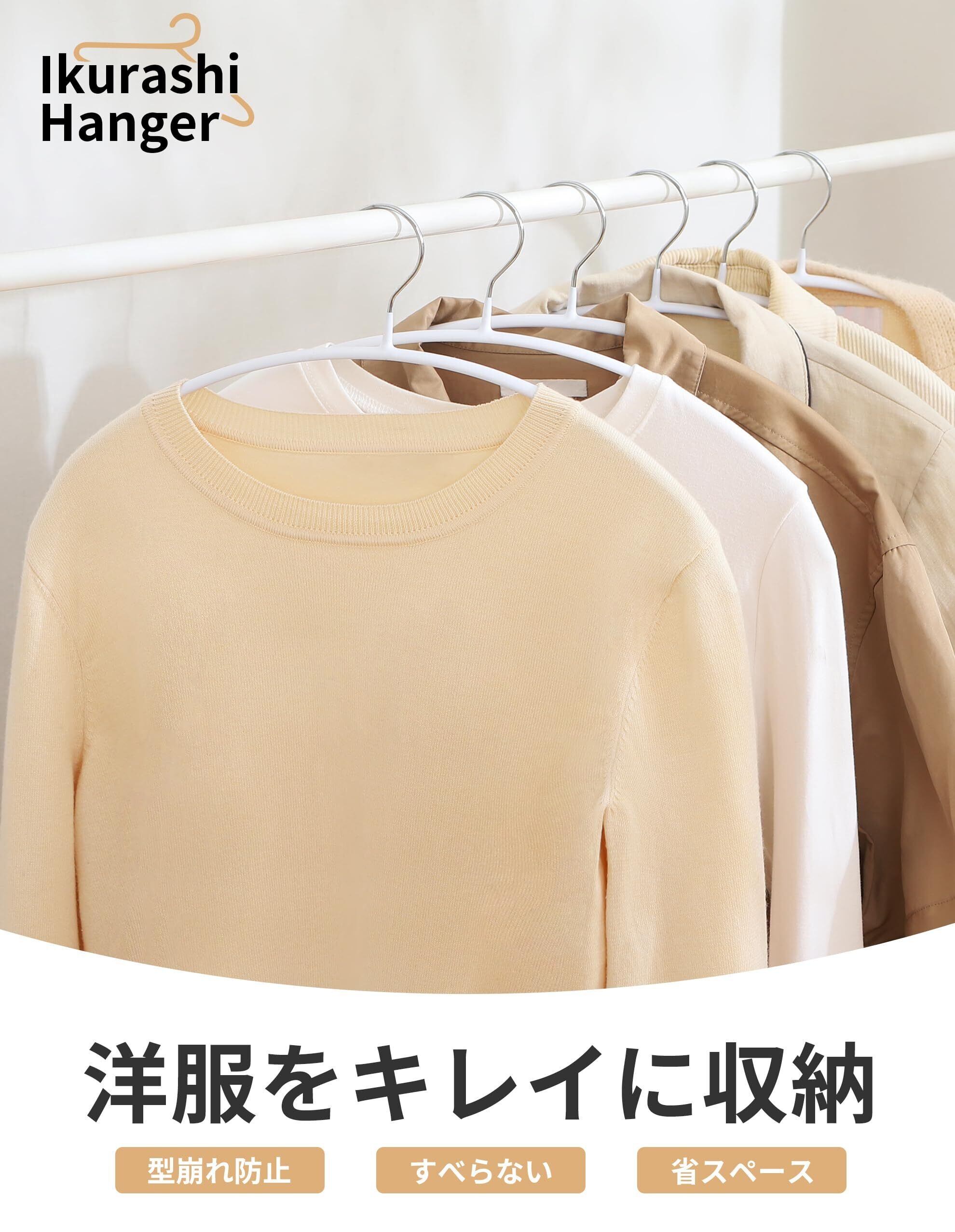 【 限定】アイクラシ(Ikurashi) ハンガー かたくずれ防止 すべらない 30本組 あとがつかない おしゃれ 滑らない ホワイト