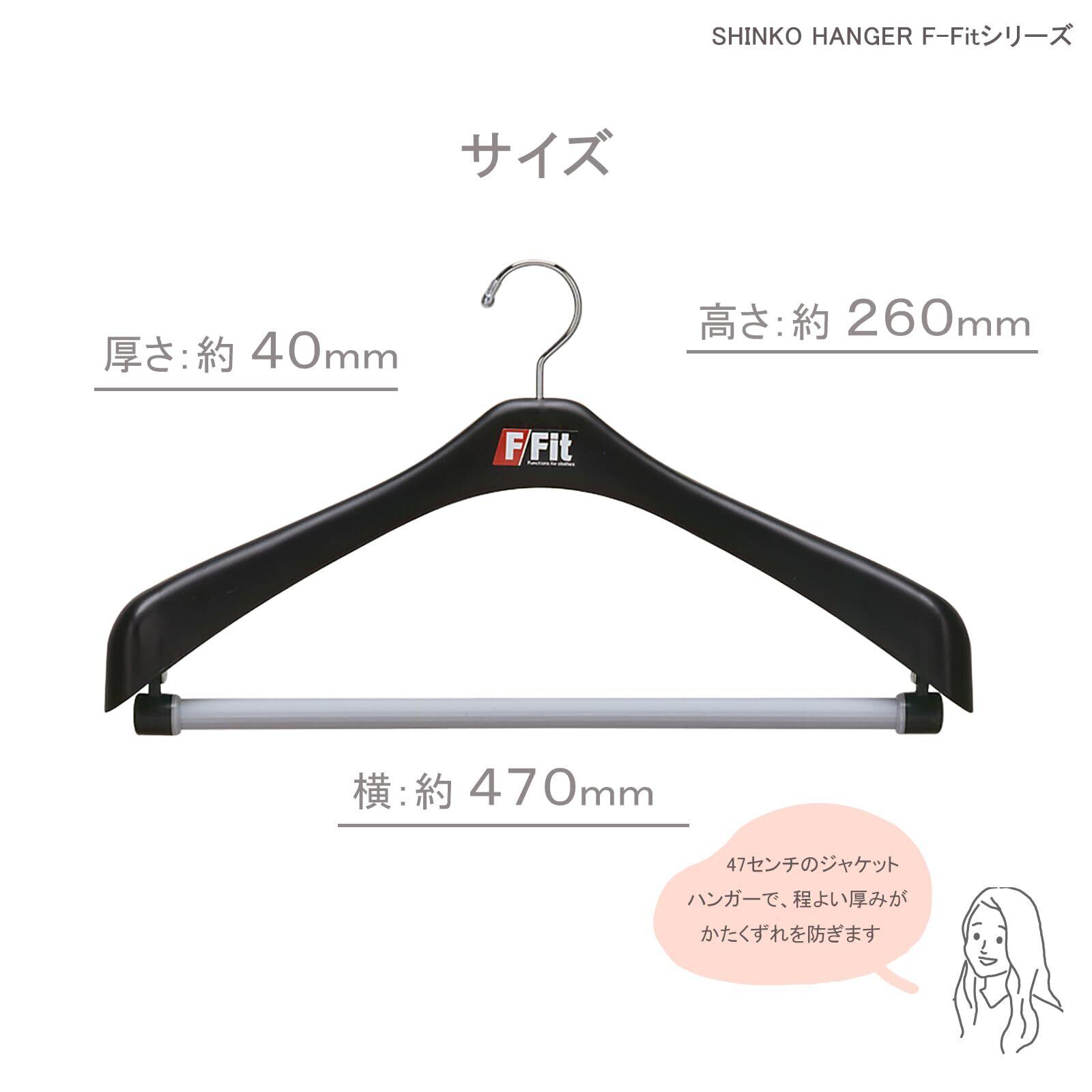 シンコハンガー(Shinkohanger) 衣類用ハンガー F-Fit ジャケット回転式47 5本セット ブラック 日本製 ラック ズボン 洗濯 タオル スラックス バスタオル ネクタイ 頑丈 かたくずれ防止 物干し スカート パンツ 押し入れ 収納 コート スーツ 011881