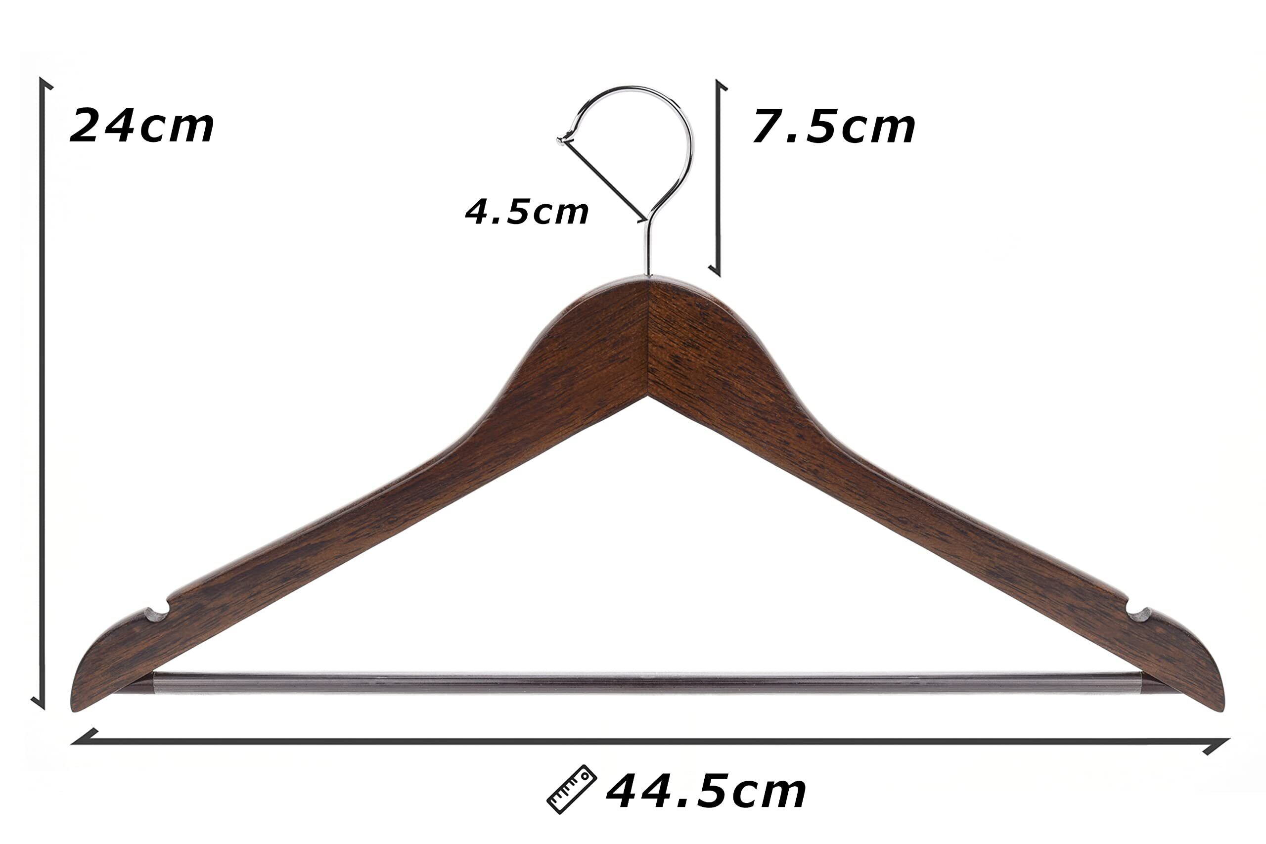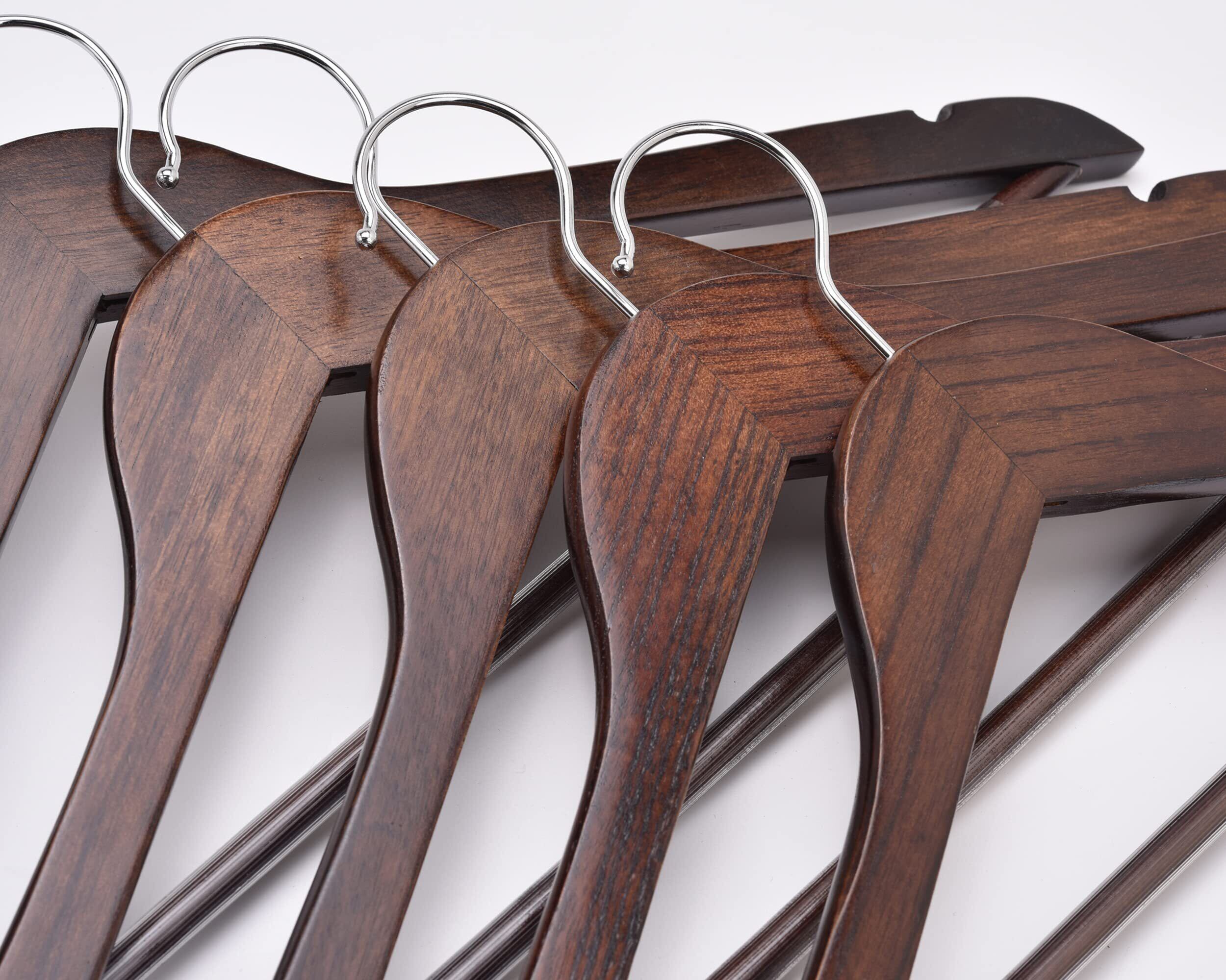 Amber Home 木製ハンガー ズボンバーが付い 回転式フック 滑り止め凹み付き 省スペース 洋服・スーツ・ジャケット・シャツ・ズボン・パンツ・ジャケット・コート用 型崩れ防止 シワ防止 クローゼット収納整理 20本組セット 胡桃色 ダークブラウン