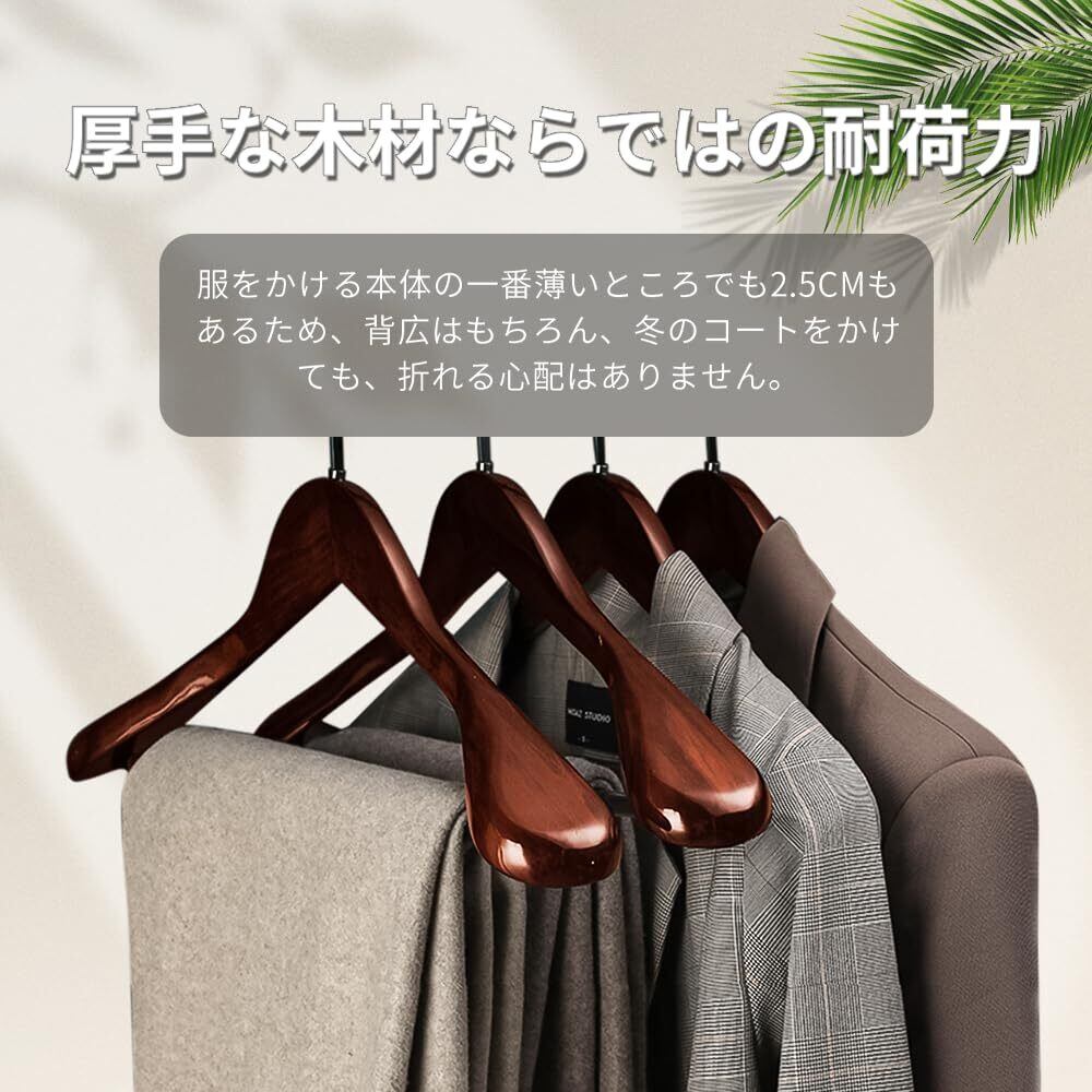 【スーツパートナー】この木製ハンガーは、ジャケット、スラックス、ネクタイを掛けることができるので、余分なスペースを取りません。肩のラインの角度は、衣服が変形しないように、人の肩に近い角度になるように設計されています。バーには滑り止めのシリコンが付いており、スラックスがハンガーから滑り落ちるのを防ぎます。