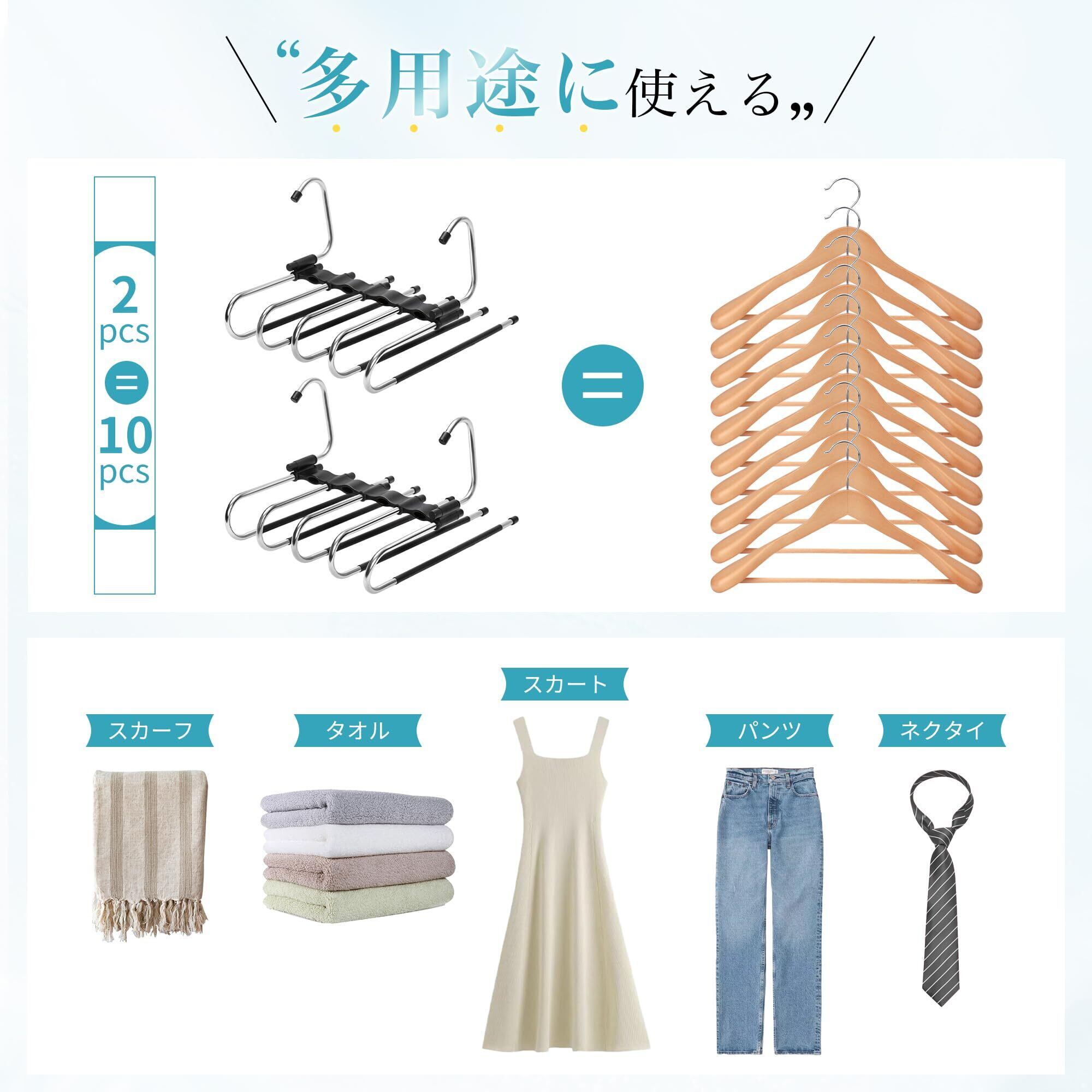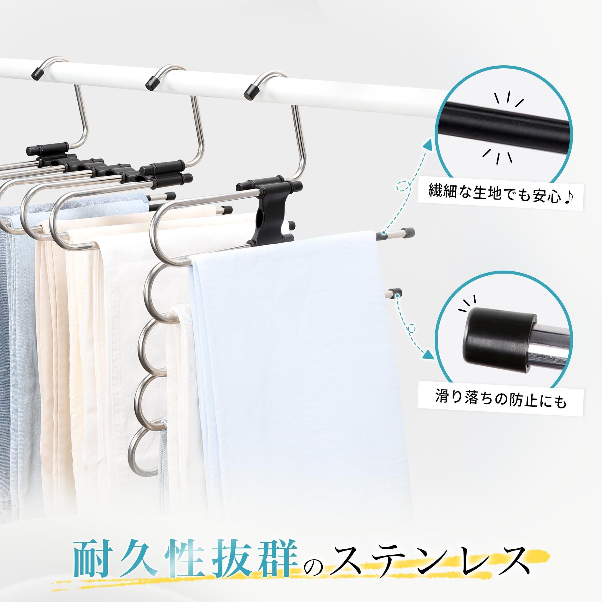 【新着商品】【収納力が5倍アップ】 チチロバ(TITIROBA) ズボンハンガー パンツ ステンレス 2本組 省スペース 縦横両用 5連 折り畳み 跡がつかない すべらない マットブラック