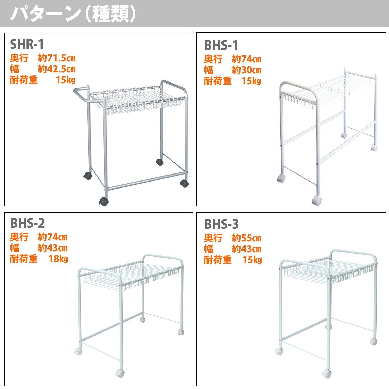 【材質】〈パイプ・ハンガー〉 鉄・エポキシ樹脂粉体塗 〈キャスター〉ポリプロピレン・鉄 〈樹脂部分〉ポリプロピレン 〈ね じ 〉鉄・メッキ