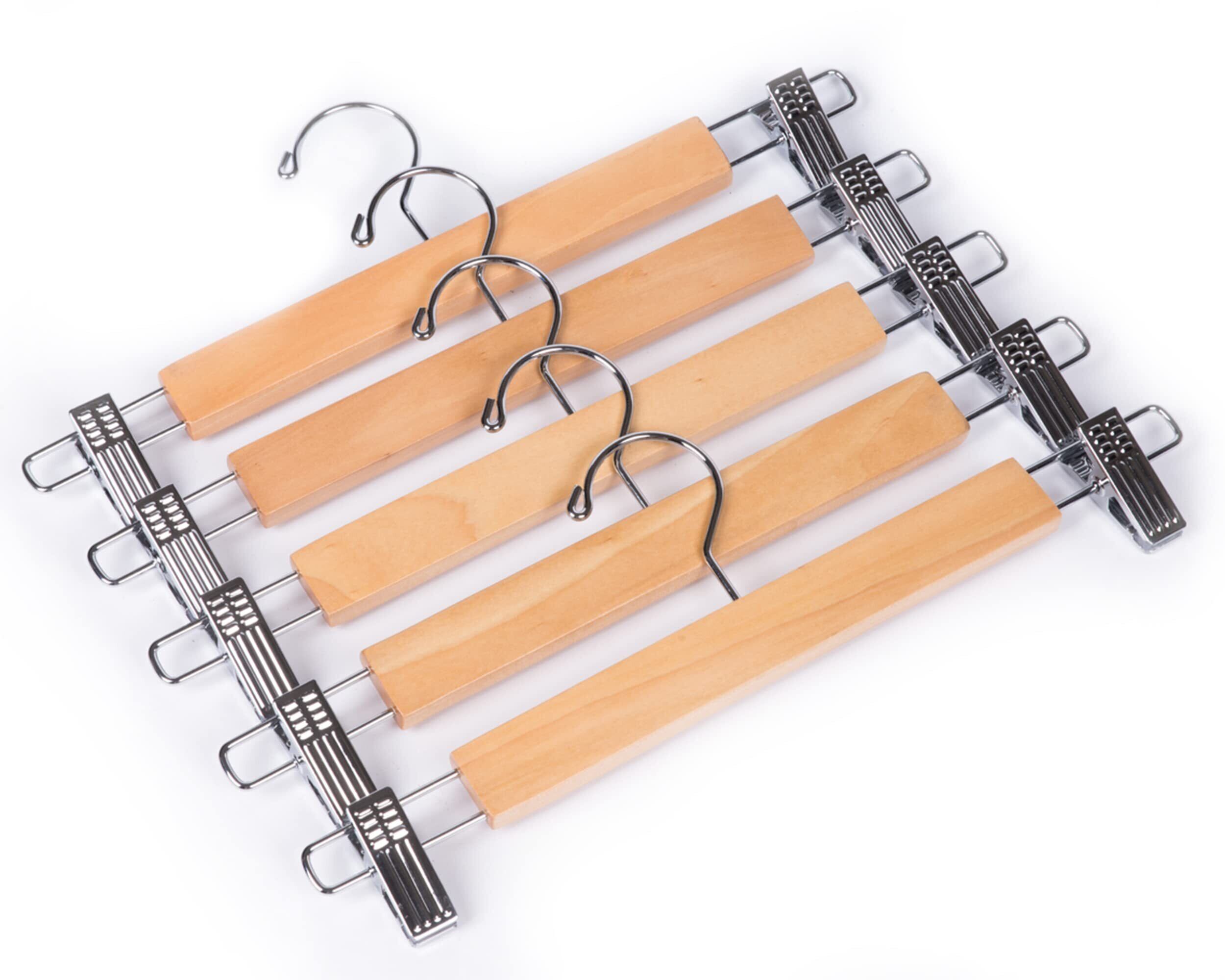 Amber Home 木製ズボンハンガー スカートハンガー 10本組 パンツハンガー ボトムス スラックス 型崩れ防止 滑り止め 調節可能 強力クリップ シワ防止 回転フック 防錆 クローゼット収納整理 省スペース ナチュラル