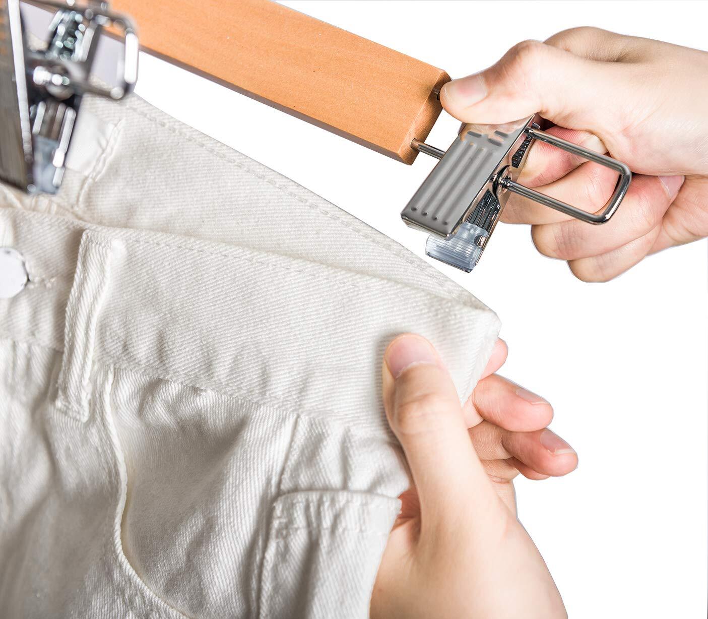 【在庫セール】Amber Home 木製ズボンハンガー スカートハンガー 10本組 パンツハンガー ボトムス スラックス 型崩れ防止 滑り止め 調節可能 強力クリップ シワ防止 回転フック 防錆 クローゼット収納整理 省スペース ナチュラル