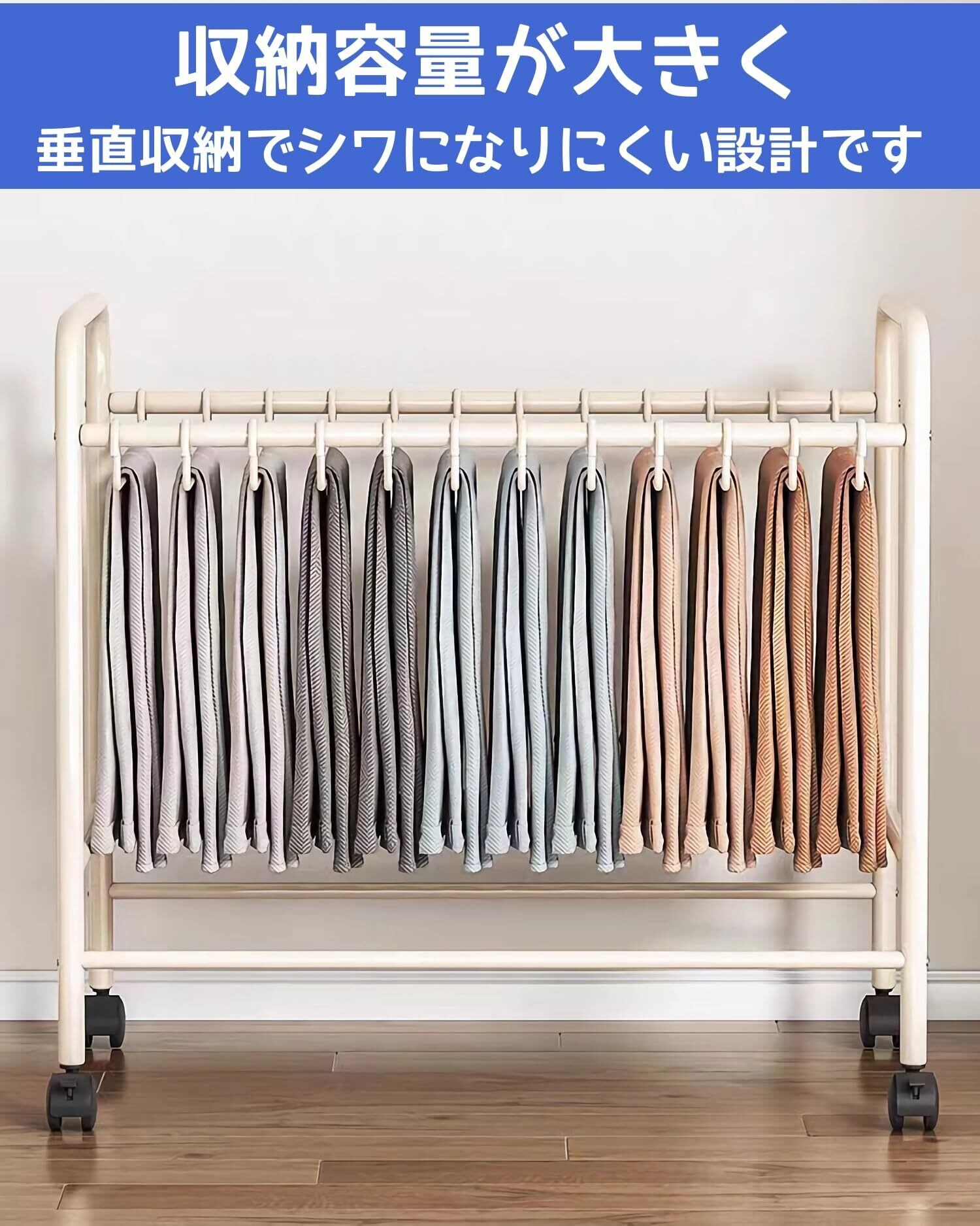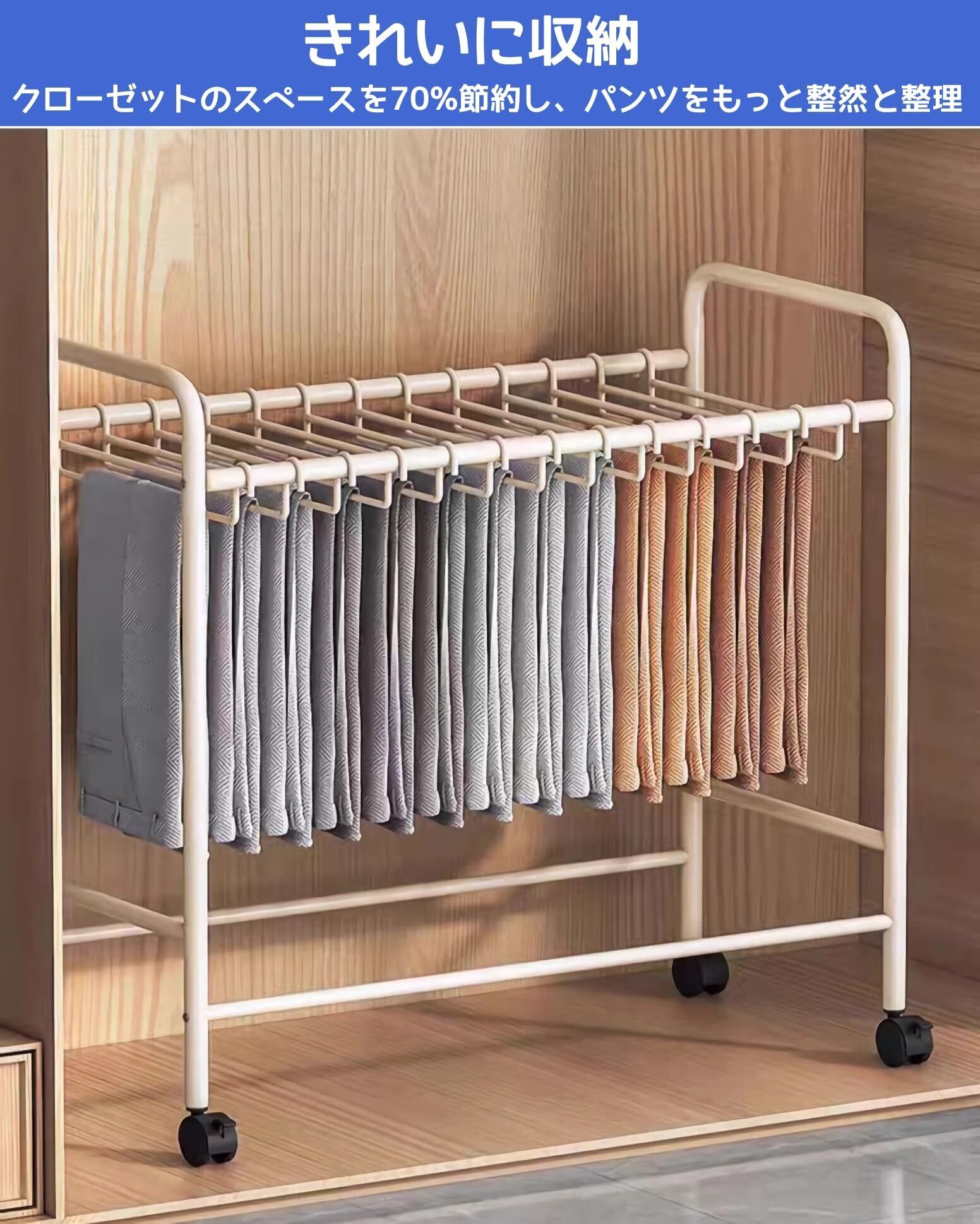 【移動ラクラク、どこでも収納可能】ClutterFreeのスラックスハンガーラックはキャスター付きで頑丈なスチール製なので軽くて移動がラクラク、ストッパーが付いているのでクローゼットやウォークインクローゼット、押し入れなどにも収納可能です 好きな時に好きな場所に置いて活用できる!