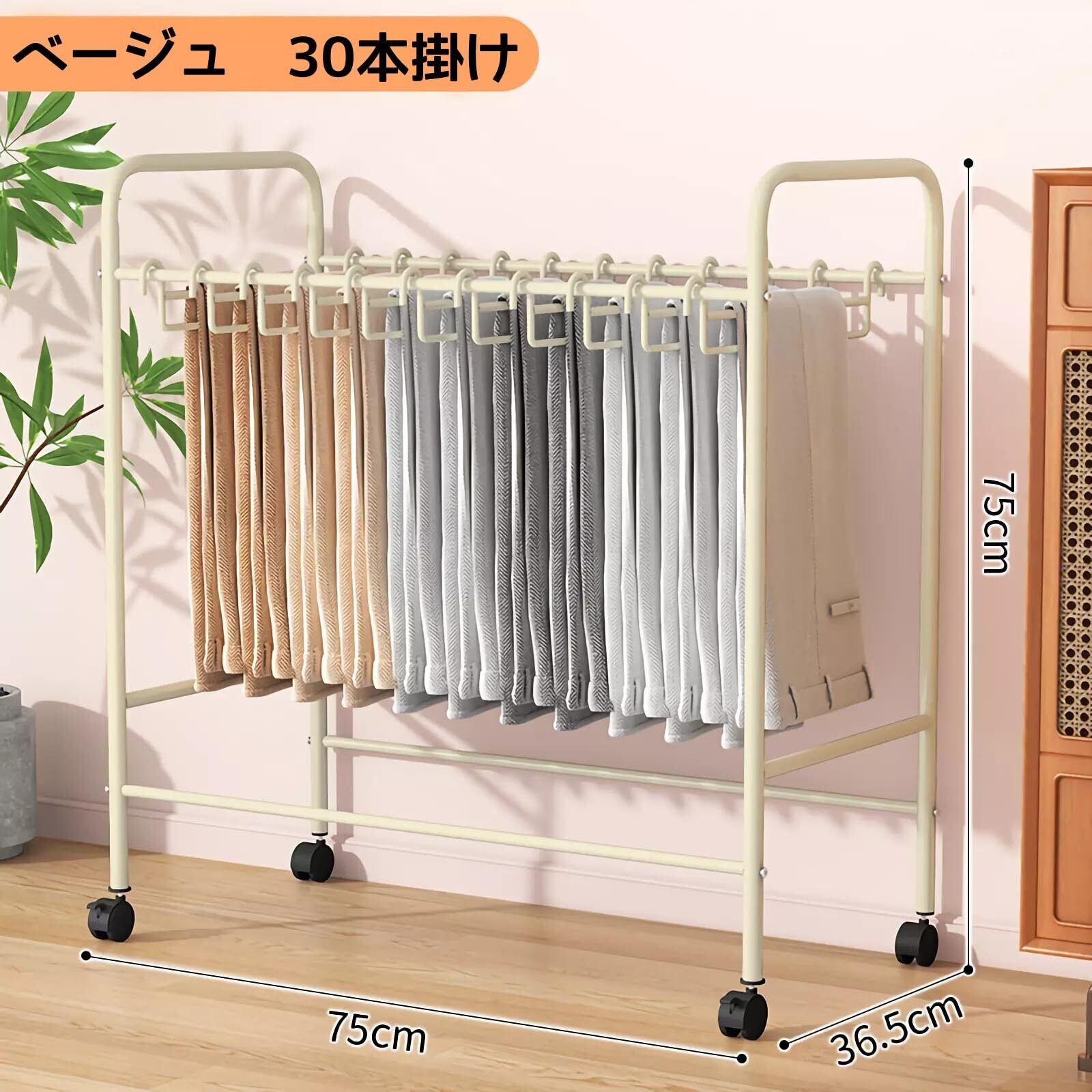 【特価セール】[Goswave] スラックハンガー 大容量 30本掛け パンツハンガー スイング式 キャスター付き 出し入れカンタン ハンガーラック 床置きズボン棚 軽量 頑丈 コンパクト 収納 省スペース 簡単組み立て (ベージュ, 幅75cm 30本掛け)