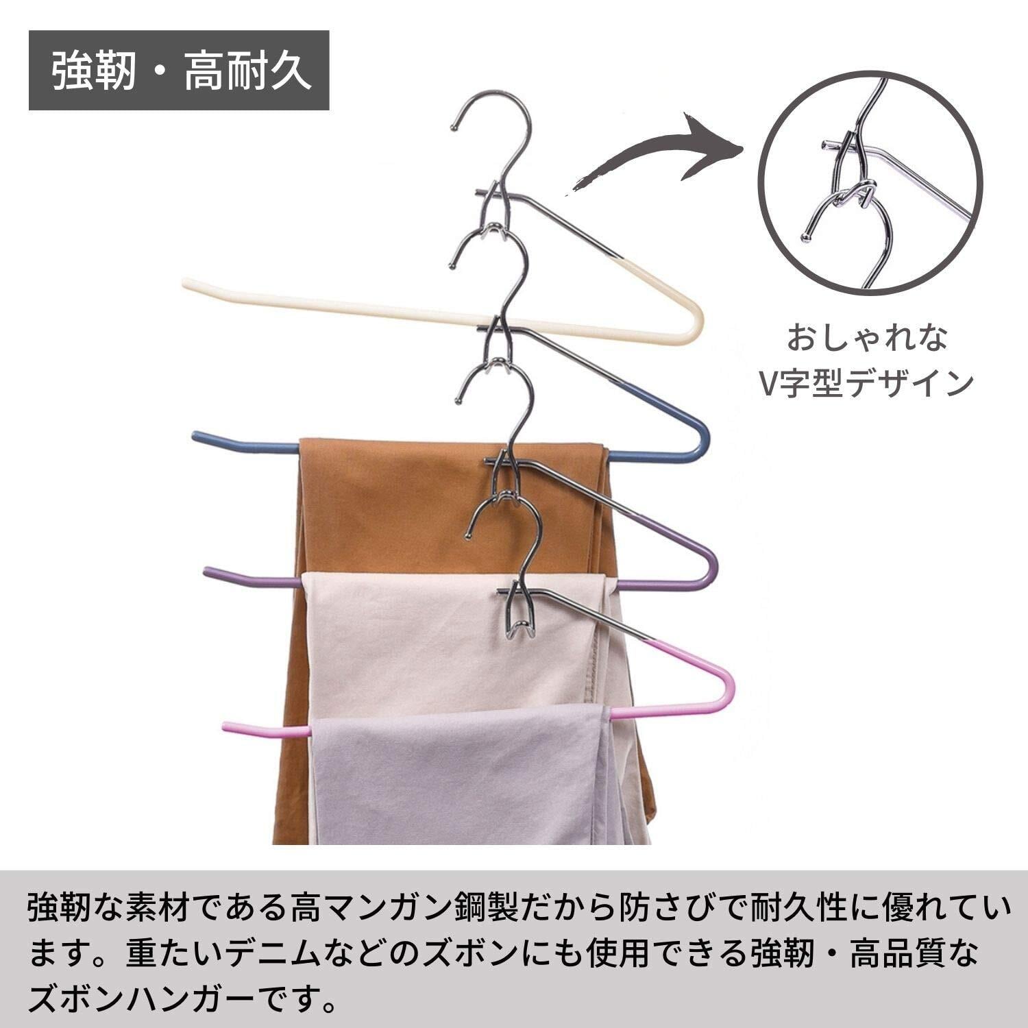 【強靭・高耐久】強靭な素材である高マンガン鋼製だから防さびで耐久性に優れています。重たいデニムなどのズボンにも使用できる強靭・高品質なズボンハンガーです。