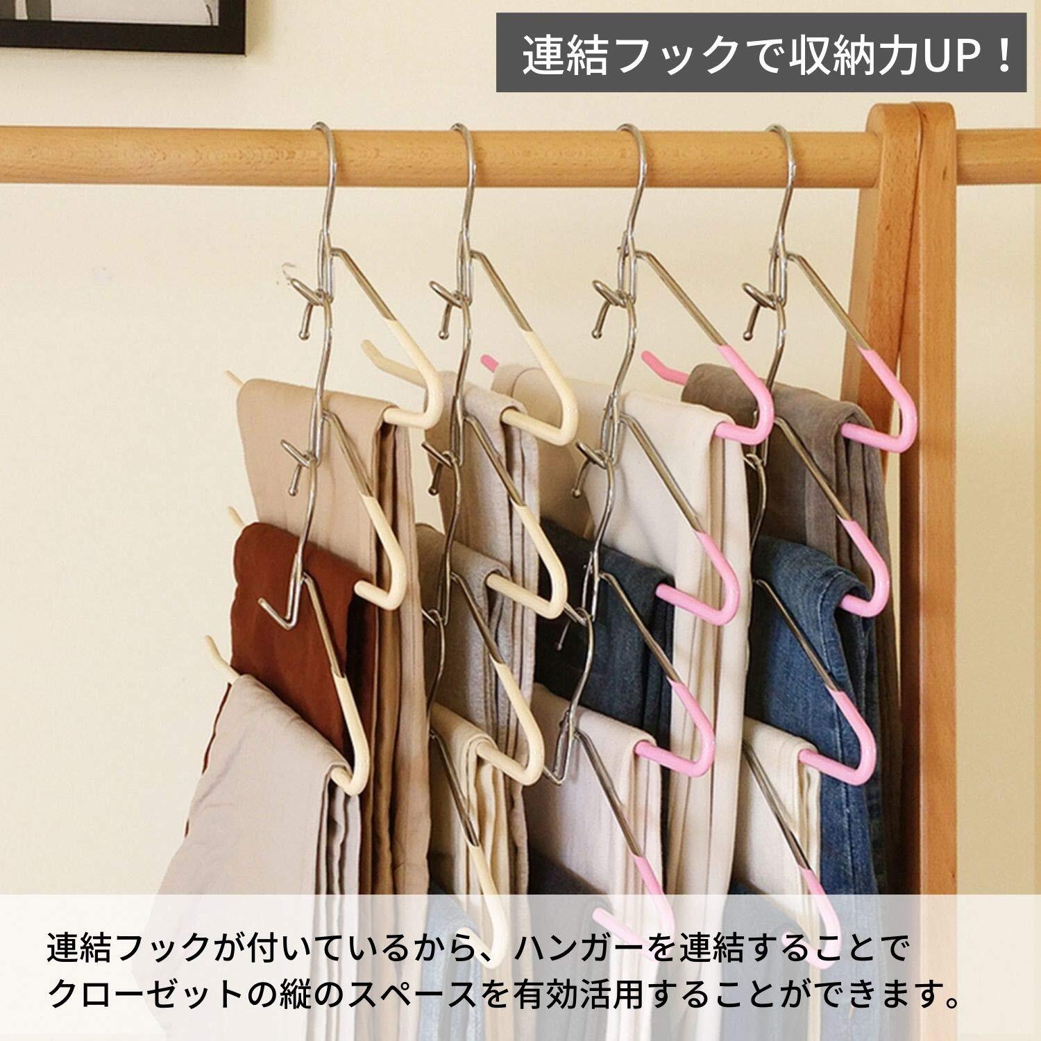 Mahona すべらない ズボンハンガー 連結フック付き 10本 ズボン スラックス パンツ タオル 押入 収納 (オフホワイト)