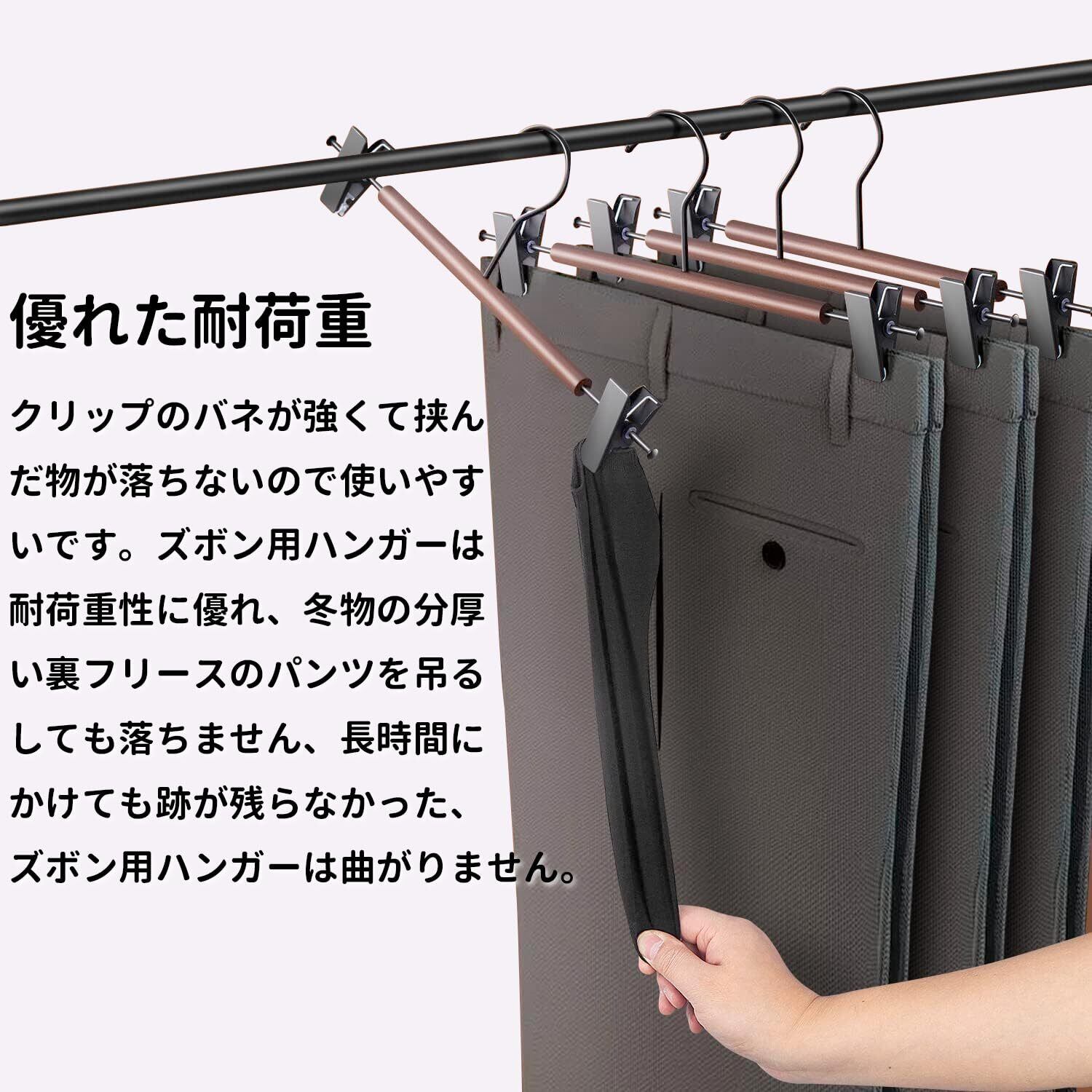 【服に優しい】:グリップ力に優れながらも衣類にクリップ跡が付きにくく、上品で使い勝手も良いボトムス用ハンガーです。