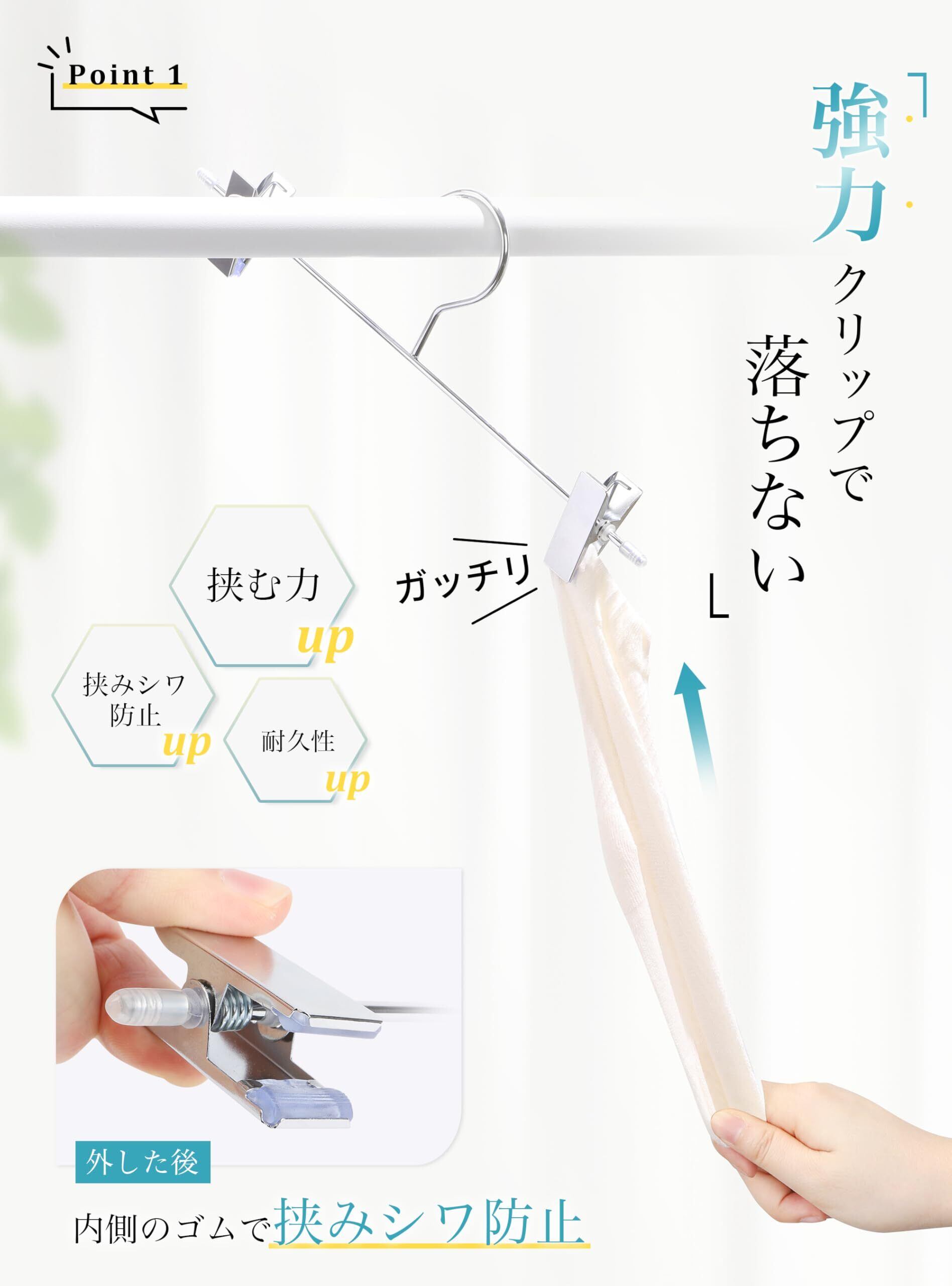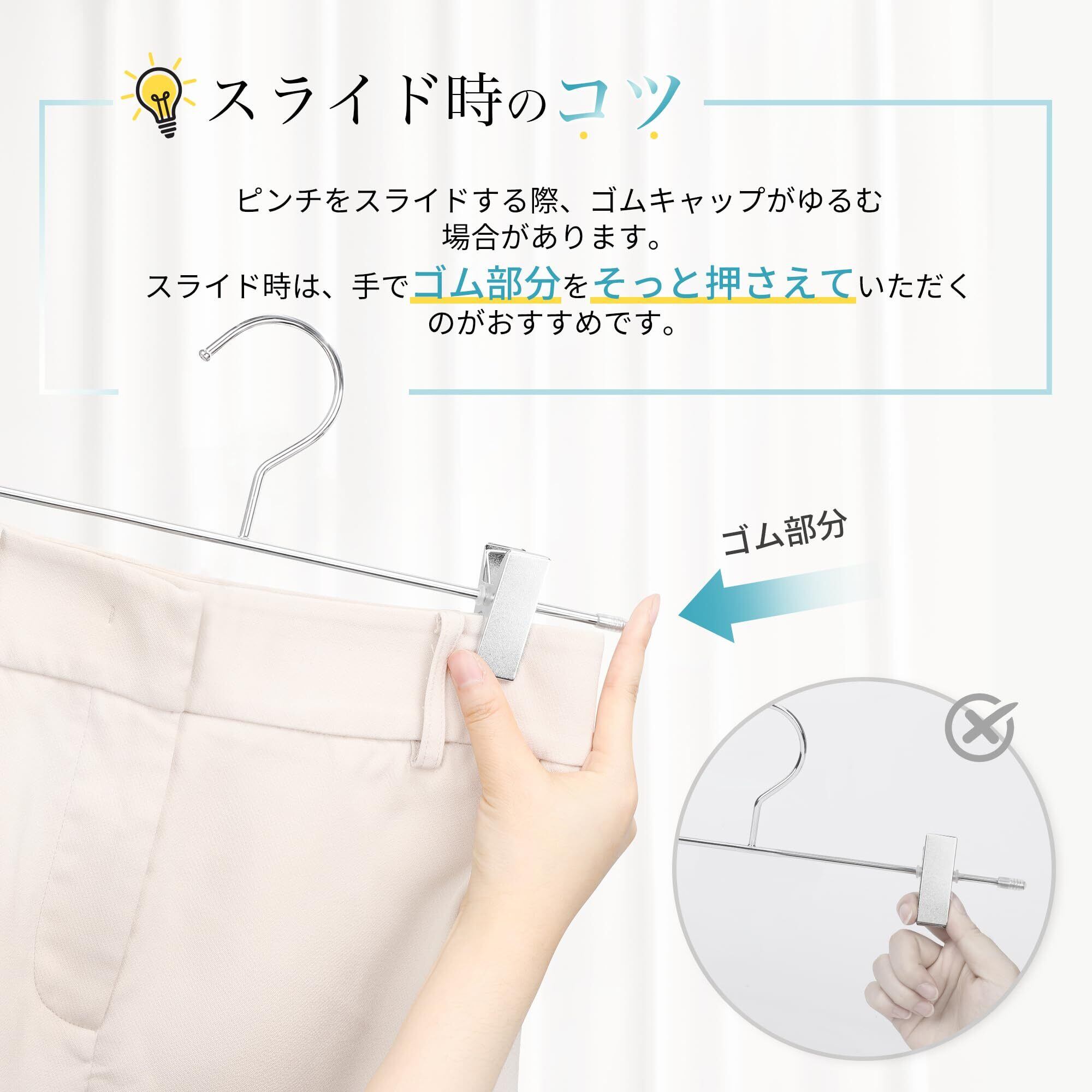 【ボトムス幅に合わせて調整可能】クリップは左右にスライドするので、子供用の服から大人用の服まで使用可能。