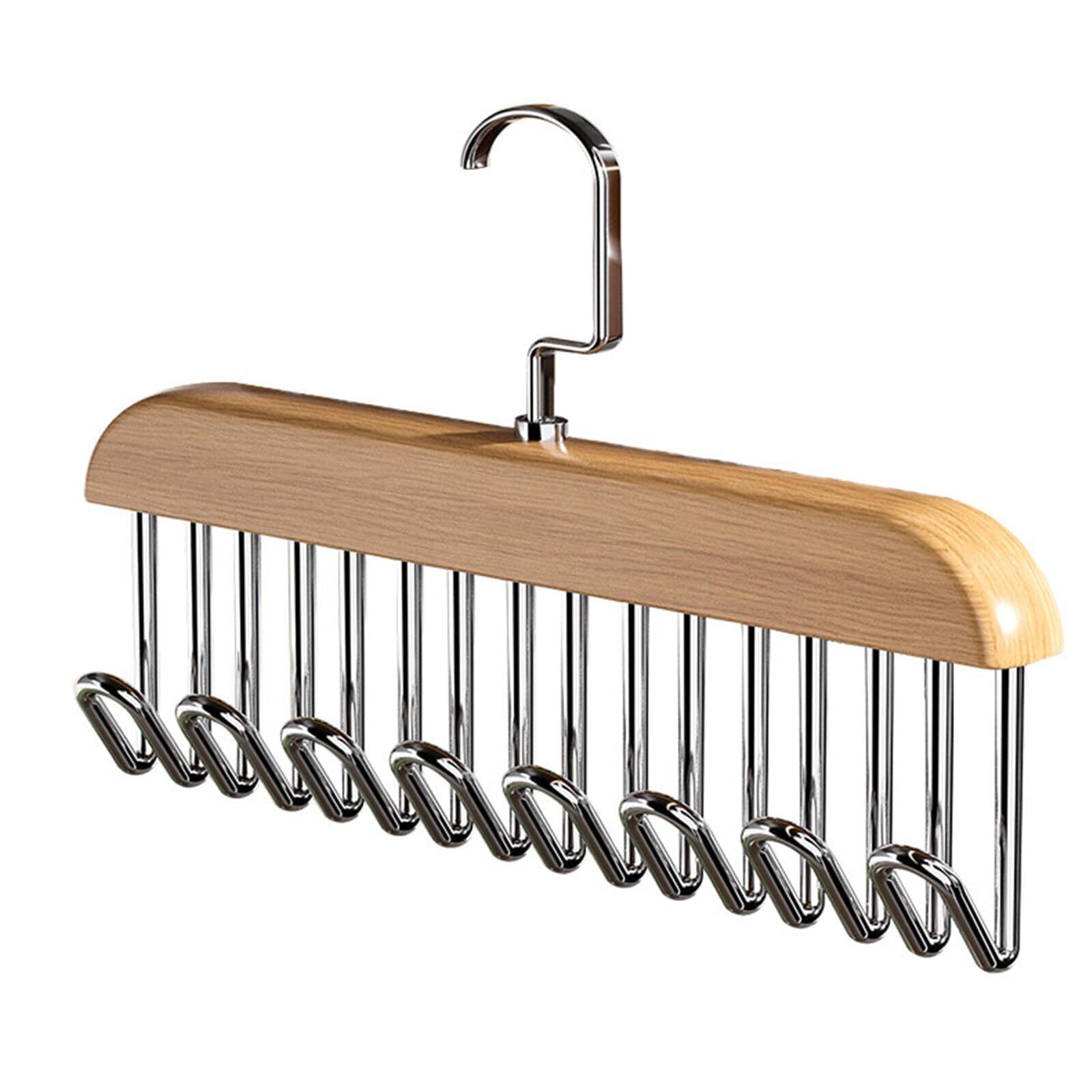 【新春セール】ネクタイハンガー ベルトハンガー 【8本収納】 ベルト収納 360度回転 ネクタイ物干し 落下防止 おしゃれ ベルト ネクタイ スカーフ キャミソール (ウッド) [並行輸入品]