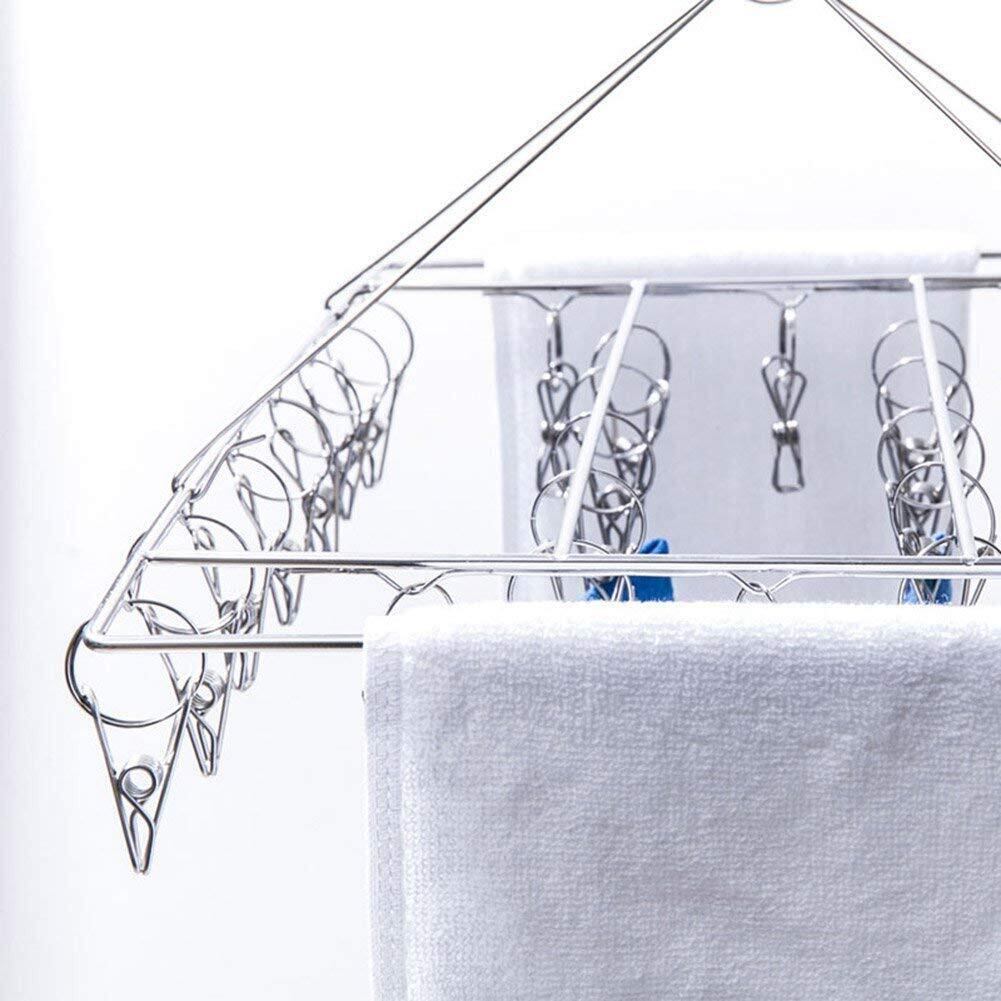 LEEPWEI ピンチハンガー 洗濯 物干し ハンガー 52ピンチ ステンレス 折りたたみ式 多機能収納 プレゼント (10個予備ピンチ付)