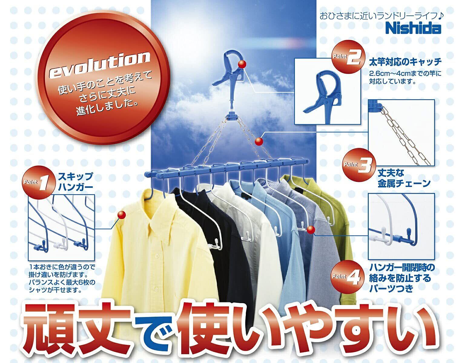 ニシダ 洗濯 物干し スキップ ハンガー11連式 プレミアム ダークブルー 54×49×40cm シャツ類を一度に11枚干せる 多連ハンガー