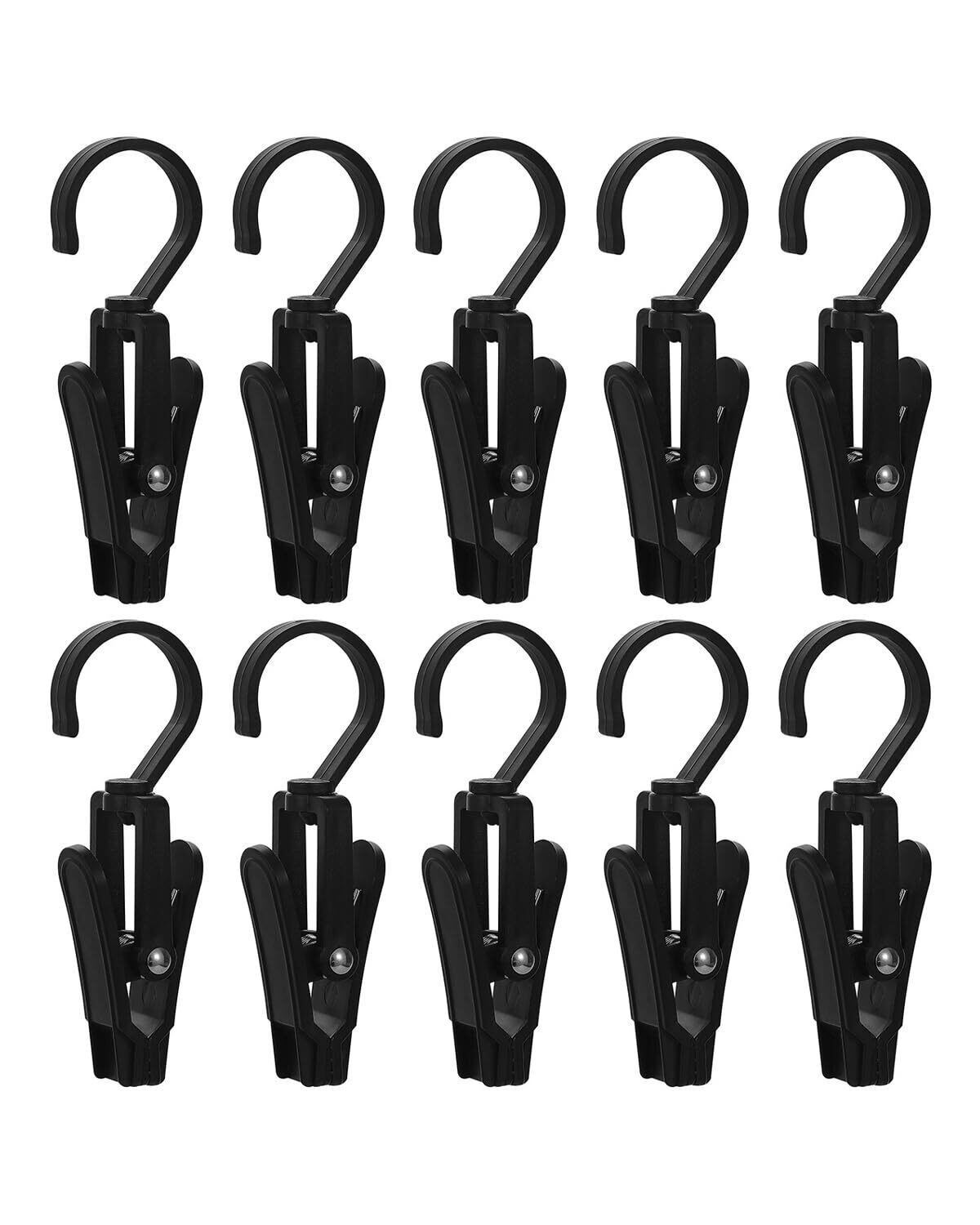 harukita 洗濯クリップ 洗濯バサミ 洗濯ばさみ カーテンクリップ フック付き シャワーカーテン 回転フック ハンガー 多用途のフック ブラック 10個
