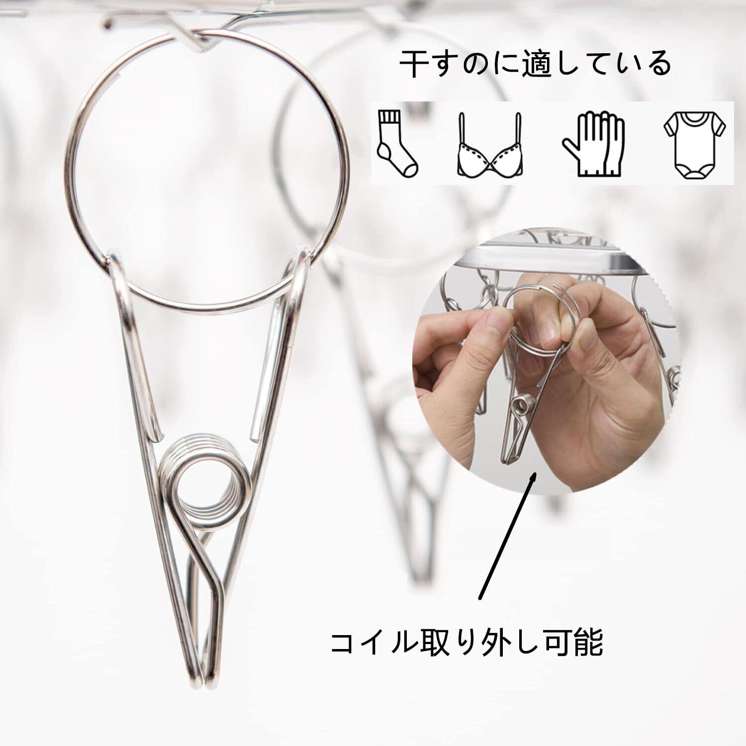 Skroad ステンレス鋼クリップ セット、洗濯バサミ 24個、ノンスリップ ペグ付き乾燥ラック修理用アクセサリー、メタル シルバー
