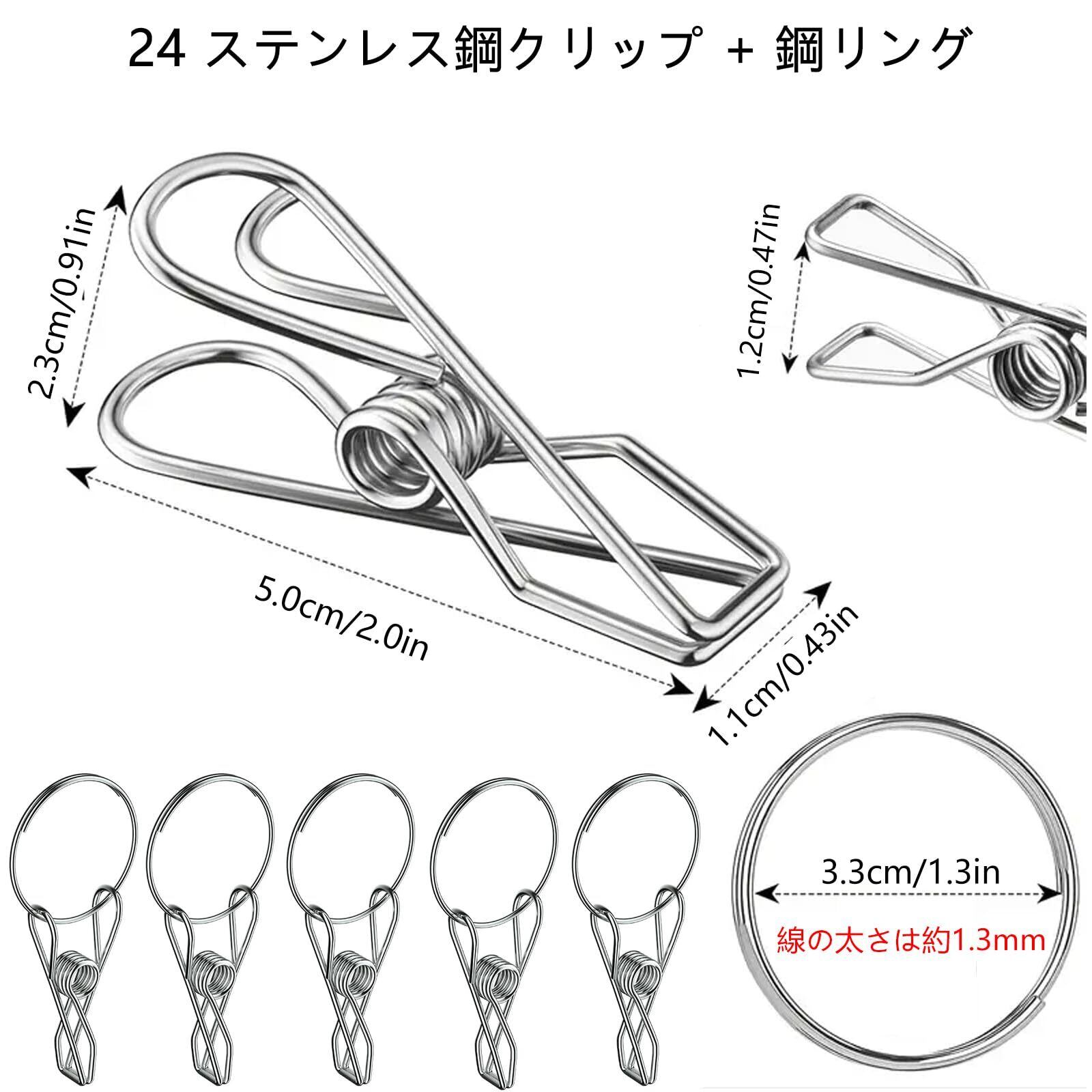 当社のステンレス製洗濯バサミには24個のステンレス製リングが付属しており、洗濯バサミと一緒に使用するように設計されており、さまざまな種類の衣類を固定するのがより便利になり、日常生活にさらなる利便性をもたらします。