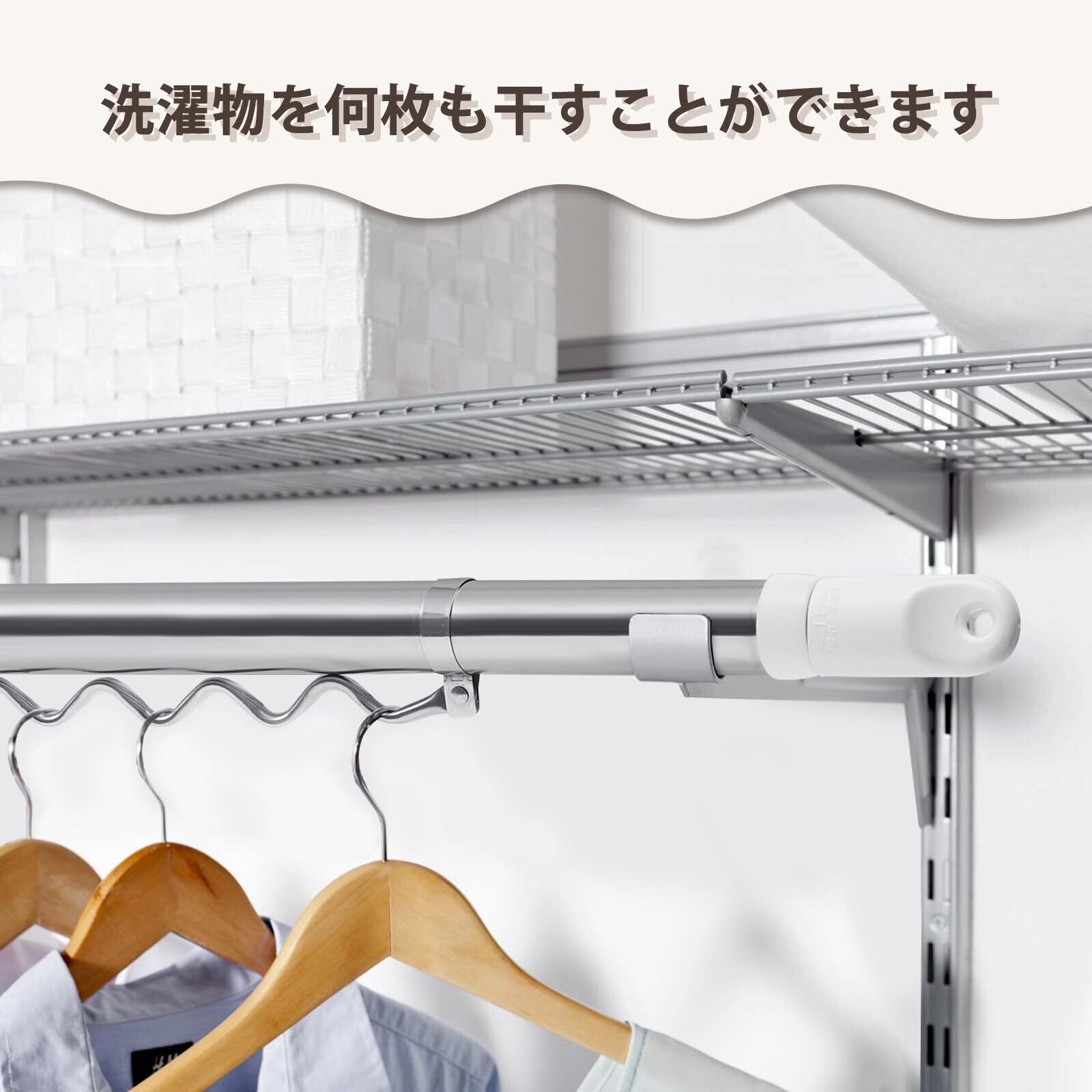 *幅広く利用可能:物干し竿としてタオル、マフラー、帽子、ふとんなどの洗濯物干し用に大活躍するだけでなく、ご都合に合わせてクローゼット中のスタンドに置けばハンガーを掛けて、衣類の収納と整理にもピッタリです。