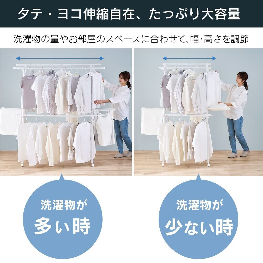 洗濯物の量に合わせて、縦横伸縮自在!
