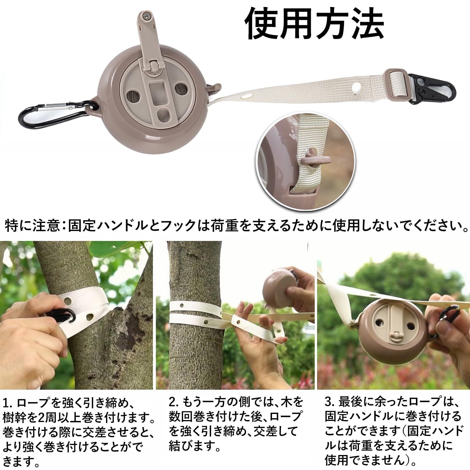 【回転収納】 試用したい時にロープを引っ張るだけ クルクルまいてコンパクトに収納できるのでロープがぐちゃぐちゃになることがありません