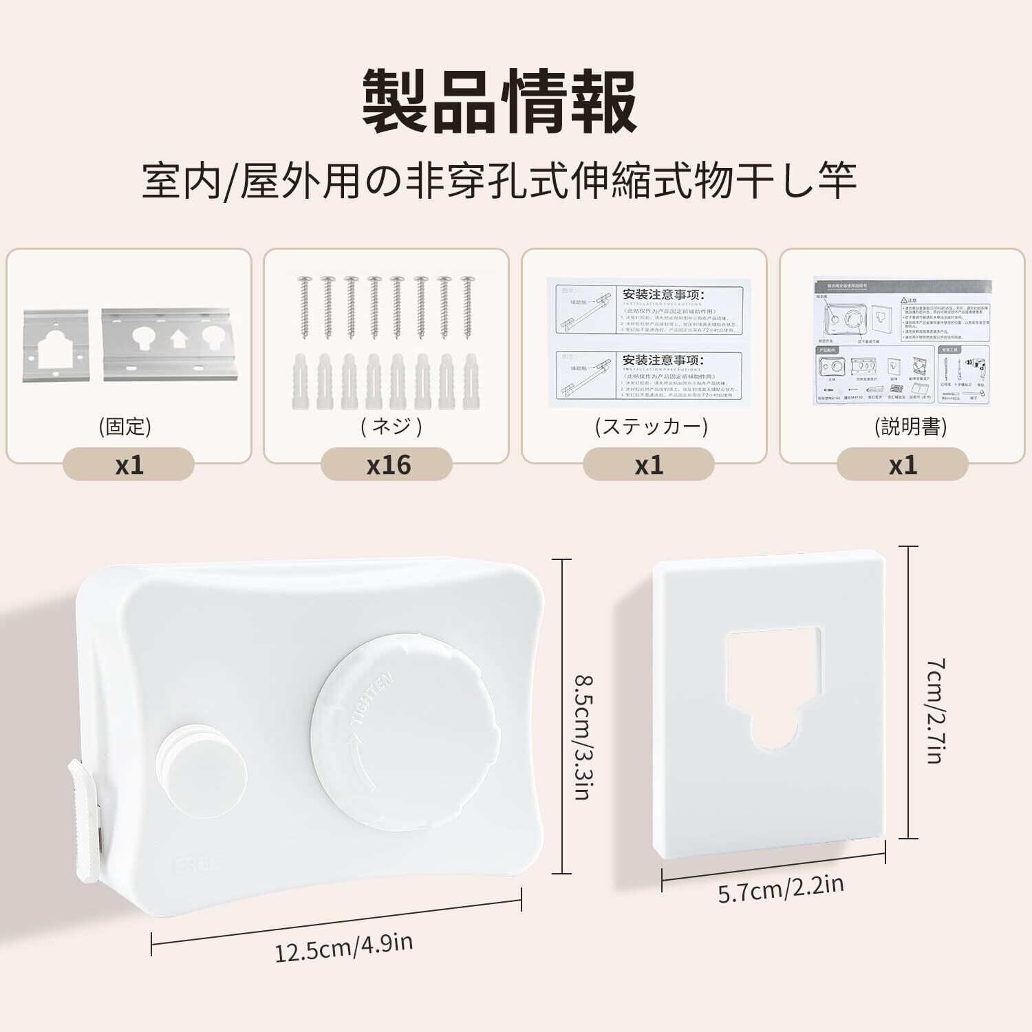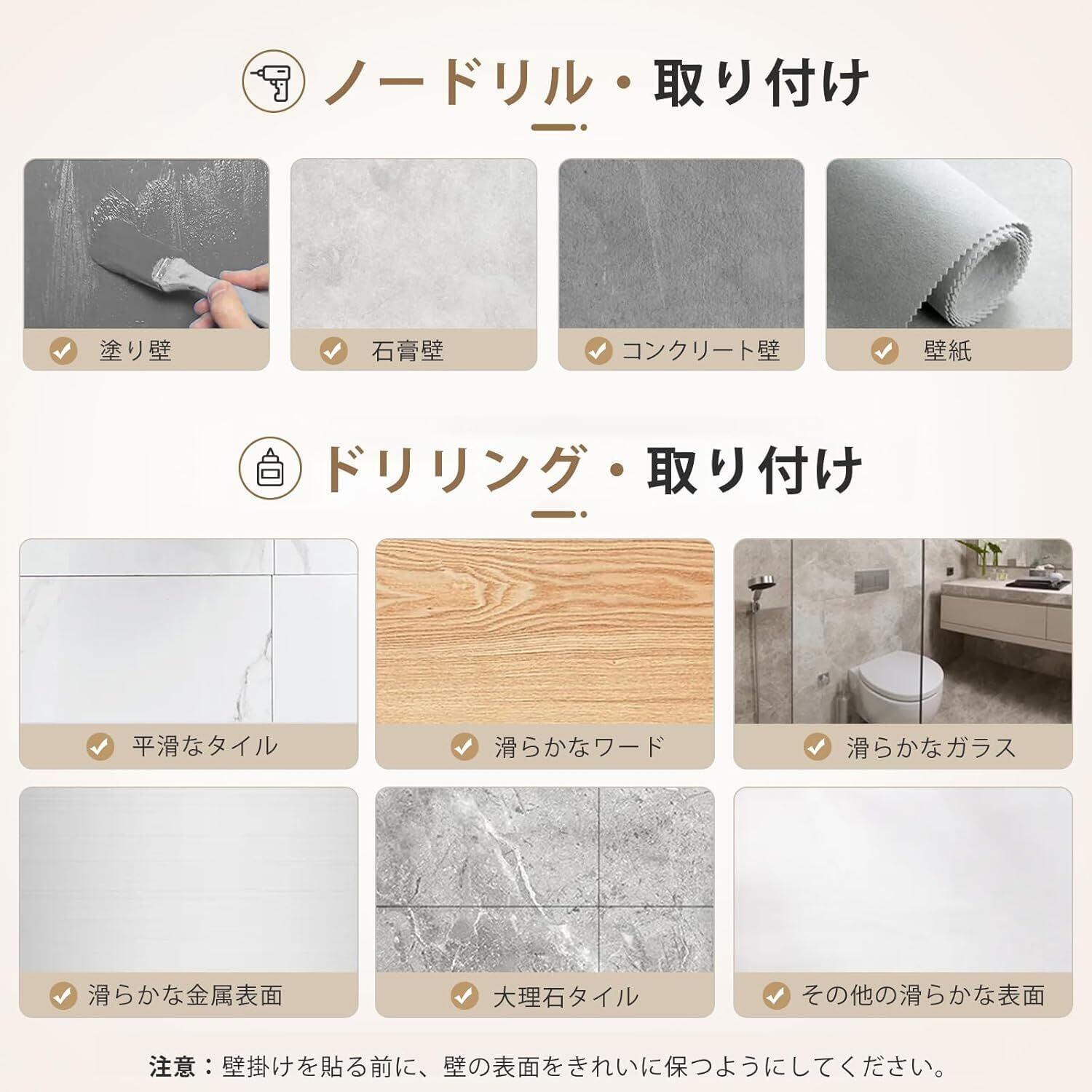 【2種類の取り付け方法】:壁に専用の強力な粘着剤で取り付けるか、穴を開けて取り付けることができます。バスルーム・ベッドルーム・リビング・インナーバルコニー・クローク・一人暮らしの部屋など、どんなお部屋にもしっかり取り付けることができます。ただし、お客様ご自身で強力な接着剤をご購入いただく必要がございますので、ご了承ください。