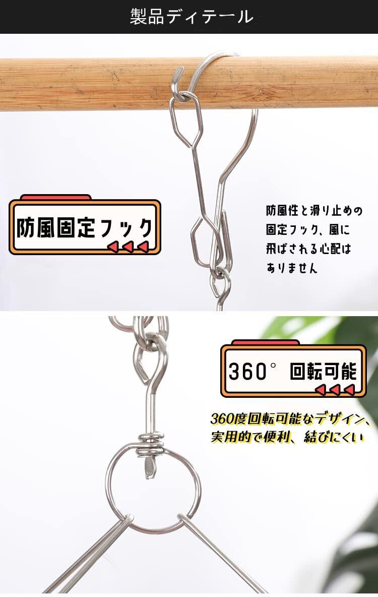 【風・ぶつかることを防ぐフック】防風フックと10個の強力なピンチが入って、靴下・衣類をしっかりと保護し、吹き飛ばされる心配はありません。