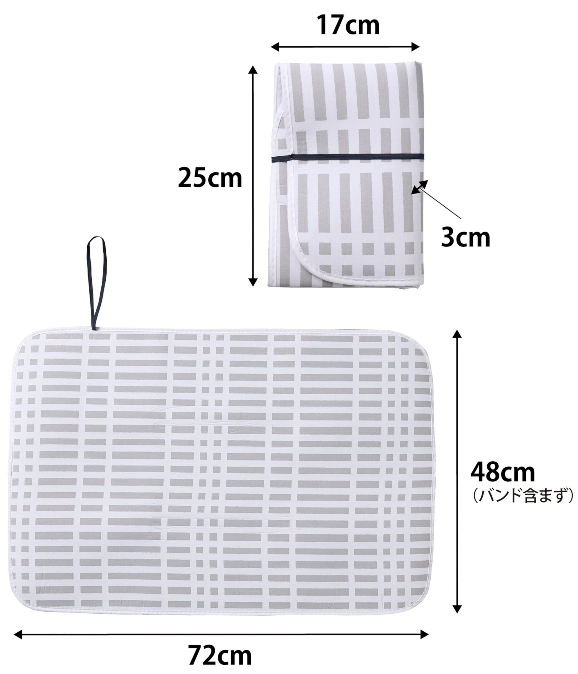 商品サイズ 掛け面:W72×D48cm(バンド含まず) 収納時:W17×D25×H3cm(バンド含まず)