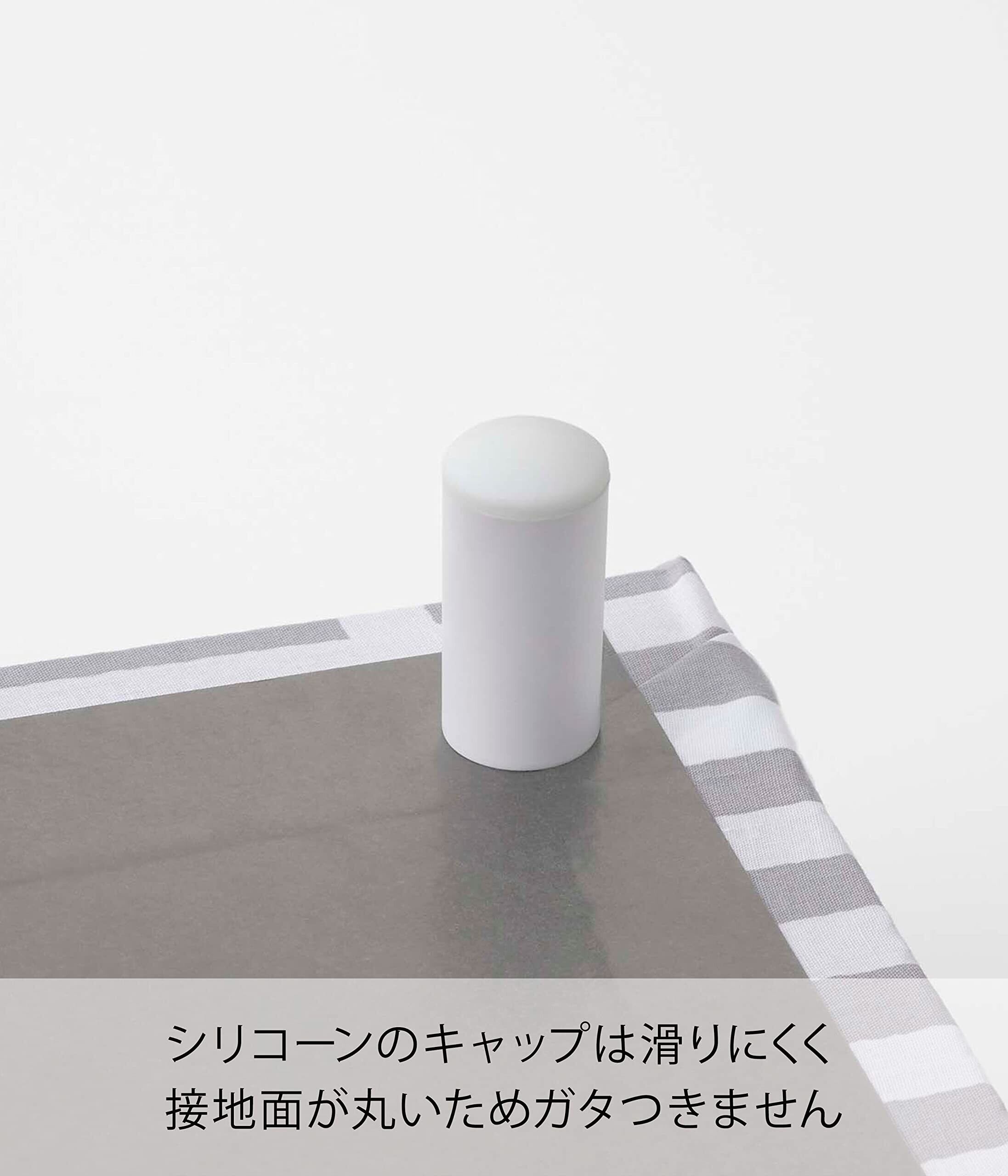 キャップは接地面が丸いため、がたつかずシリコーンで滑りません。