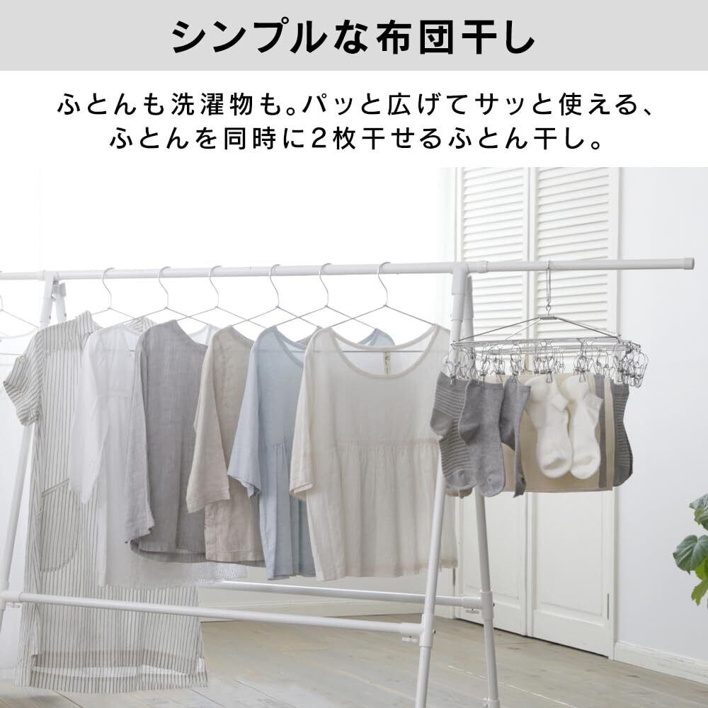 見た目も機能もシンプルに。ふとんも洗濯物も、パッと広げてサッと使える。ひとり暮らしにも最適なふとん干し。