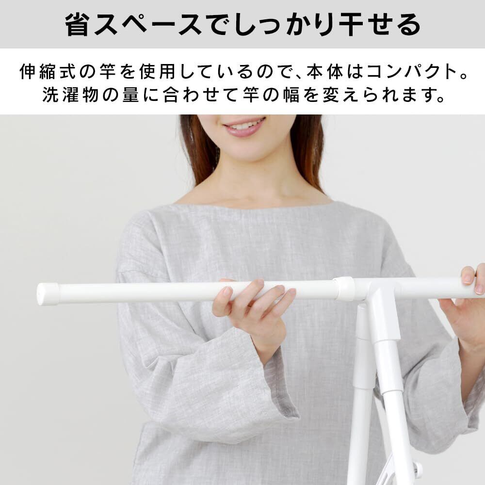 【省スペースでしっかり干せる】伸縮性の竿を使用しているので、本体はコンパクト。干す量や場所に合わせて幅を変えられます。